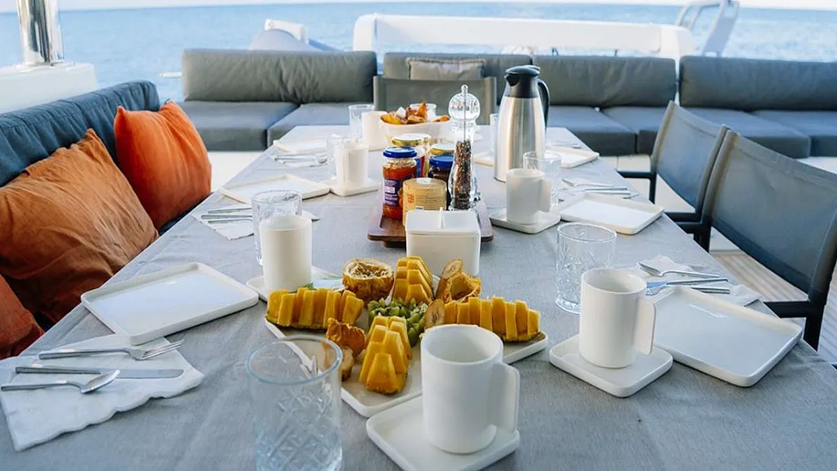 Charter rate includes, cruise aboard for 8 days / 7 nights, insurance of the yacht , crew services, full-board for guests & crew, waters & soft drinks, leisure & sport equipment aboard, flowers on board on the embarking day, use of communication means aboard ( except satellite use) within the limit of (30 Go per week for Internet access), fuel for engines including 4 hours of sail per day & gas oil for tender