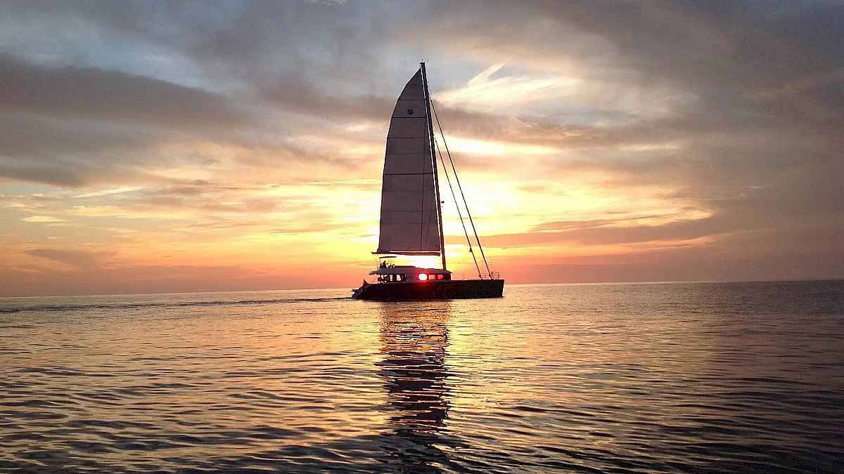 The yacht, decidedly innovative in its design has all the makings of a five-star luxury resort on the water… to begin with, she sails beautifully and is gloriously comfortable while at anchor. Launched in 2016, Kaskazi Four's metal grey hull is an arresting sight. Walking into her air-conditioned, super-voluminous saloon is a fine beginning to a week of fun and adventure. Guests can choose between five double guest cabins, each with en suite facilities. The two cabins located in the starboard hull can be converted into a suite — a honeymoon couples' delight.