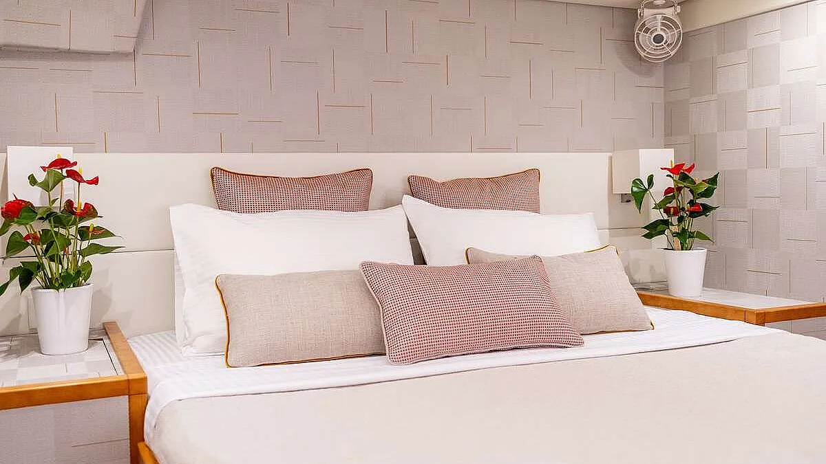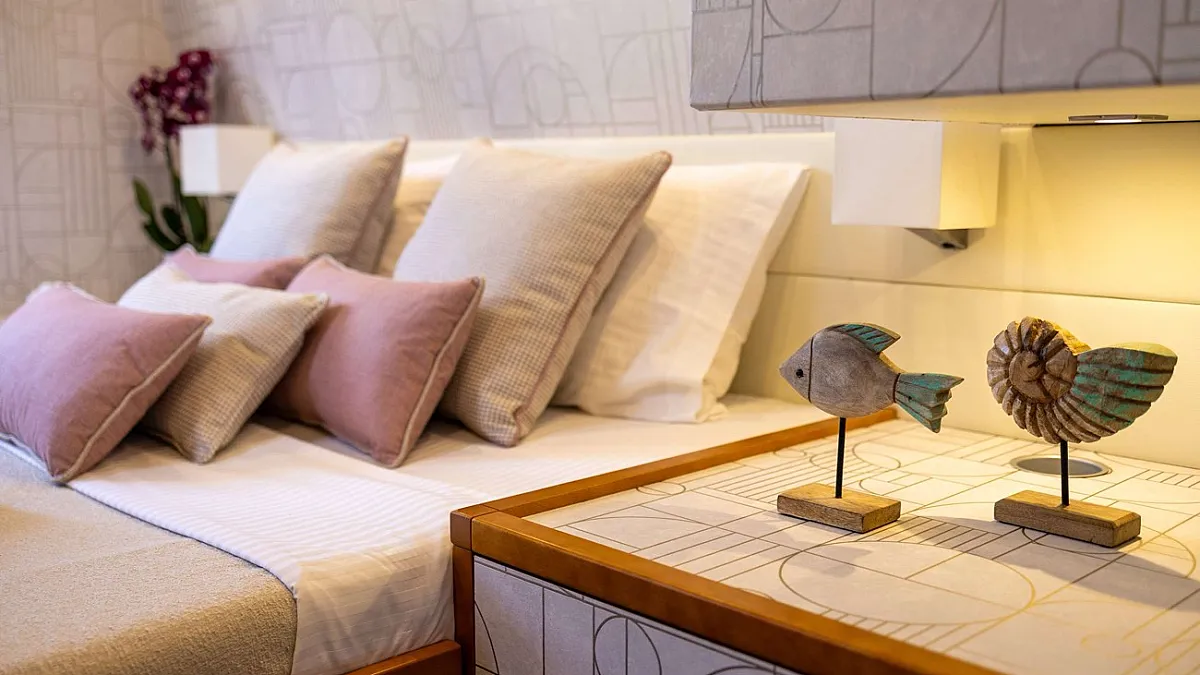 4 Double Cabins with Queen size beds, 1 Twin Cabin with upper and lower bunk beds