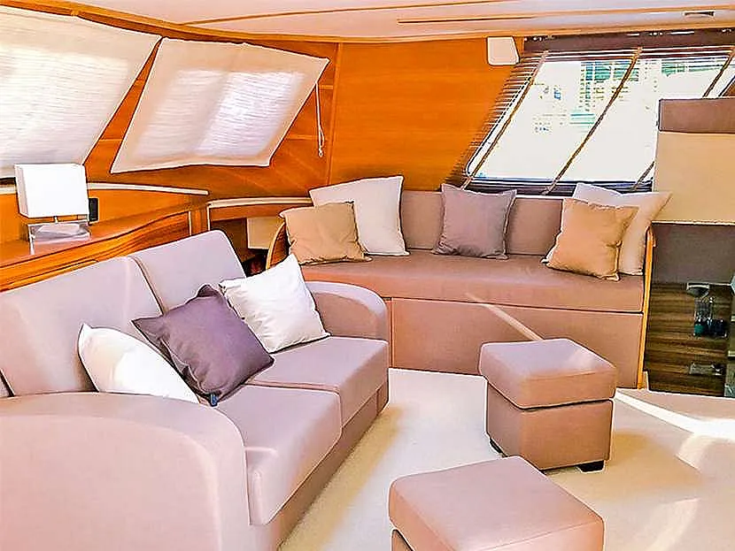 Spacious saloon area with daybeds and settees
