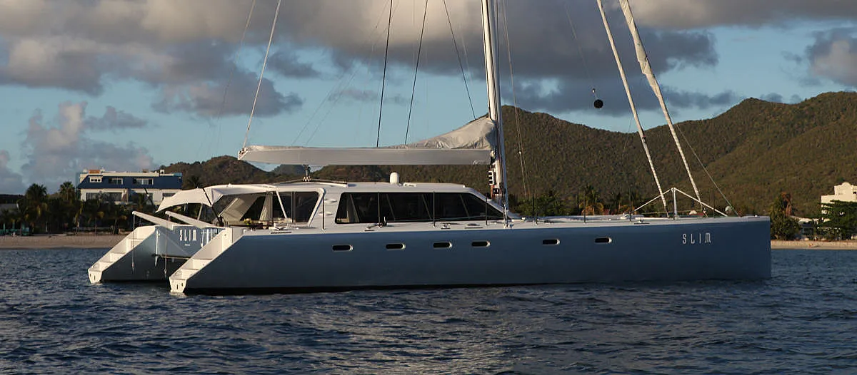 20-m catamaran SLIM is based in South Pacific for summer yacht holidays, and sails back to the Caribbean islands for winter sailing vacations. The yacht offers luxury accommodation for 6 guests in 3 cabins. SLIM yacht is custom-fitted and built to discover the world's most beautiful and remote yachting destinations.