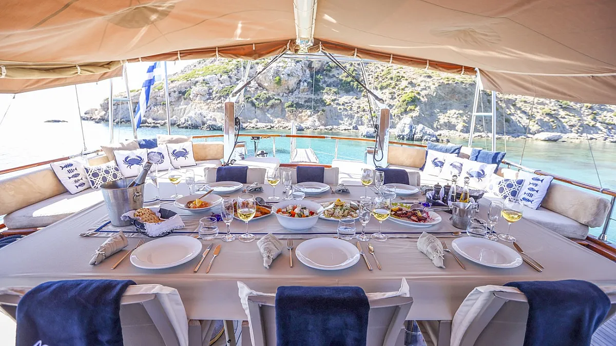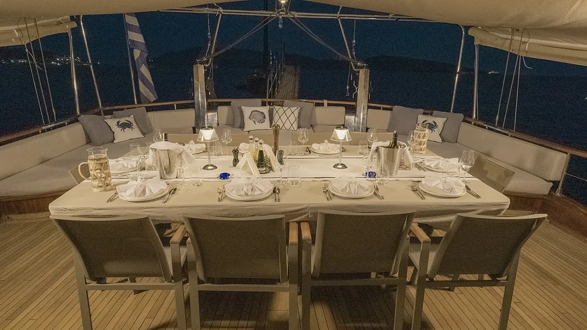 Charter rate includes, accommodation for maximum 10 Guests in 5 cabins, crew of 5 members, on board insurance, soft drinks, use of on-board equipment, air conditioning use 24h/7, Wi-Fi.