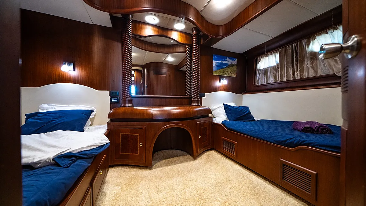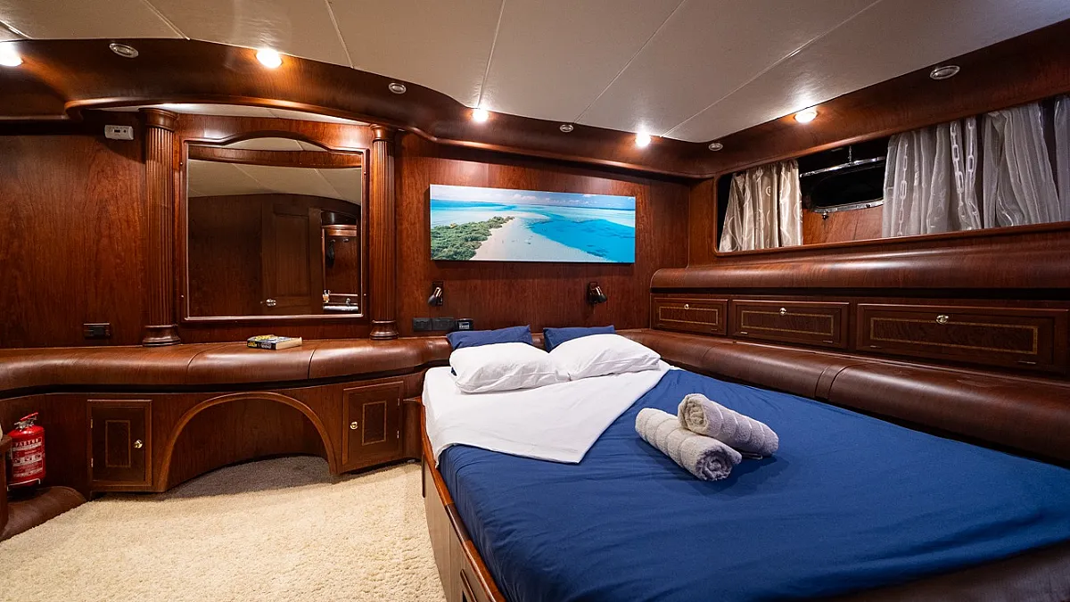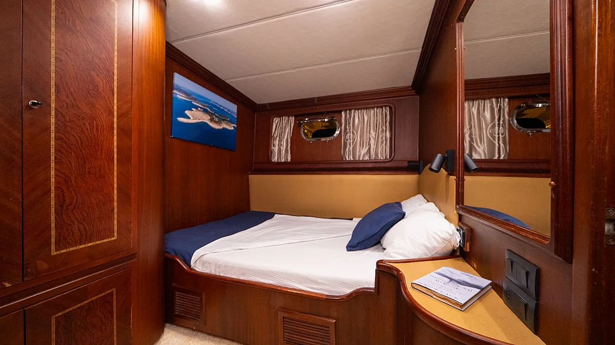 1 Master cabin, 1 VIP cabin, 2 double bed cabins; 1 twin cabin