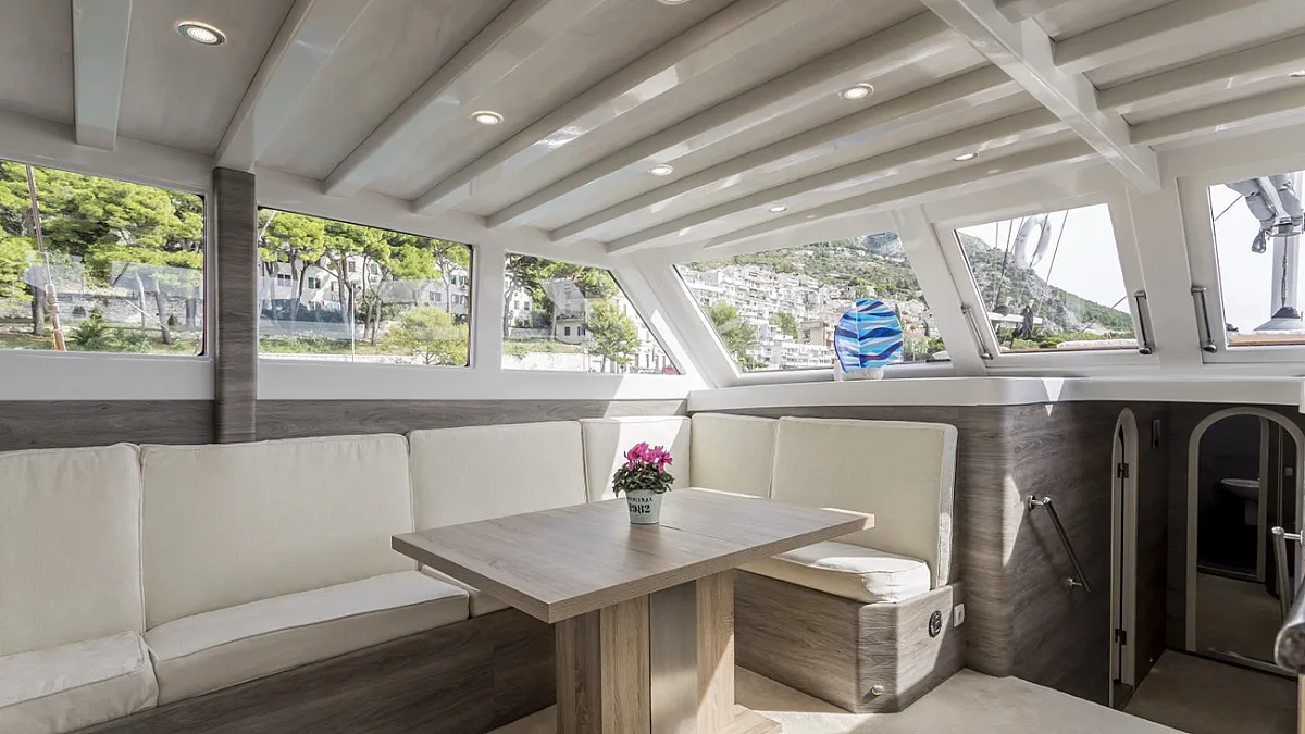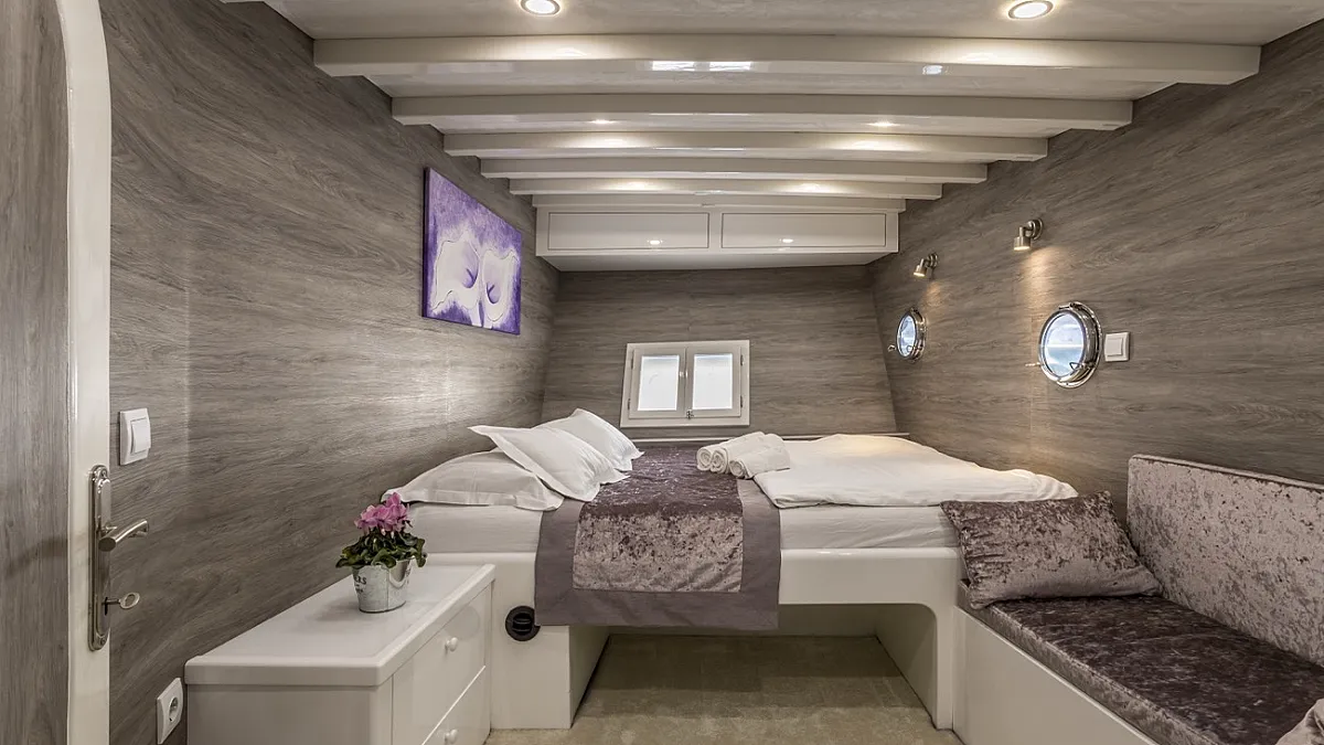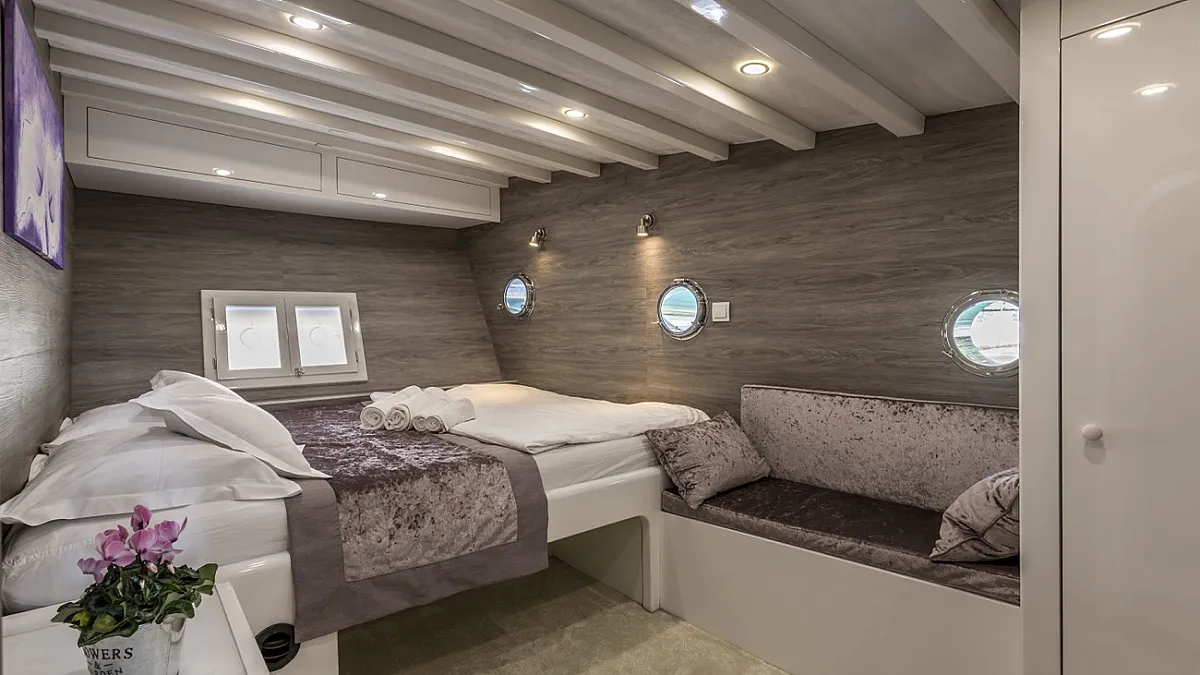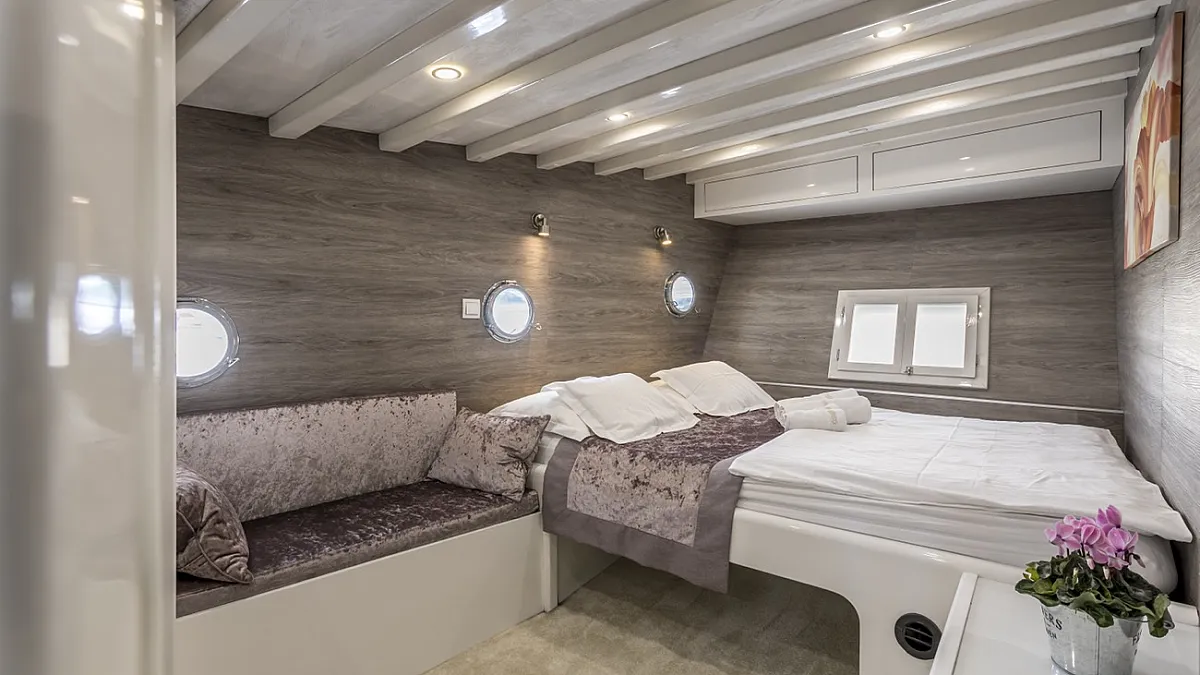 Charter rate includes, accommodation for maximum 10 guests in 5 cabins, crew of 3 and their expenses, insurance of the yacht, fuel for 4 h of the engine work daily, generator work 24/7, fuel for tender transfers to/from the vessel, use of recreational equipment (SUP, kayak, snorkeling gear, fishing equipment, assorted floats), tourist taxes, Wi – Fi, VAT of 13%.