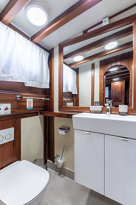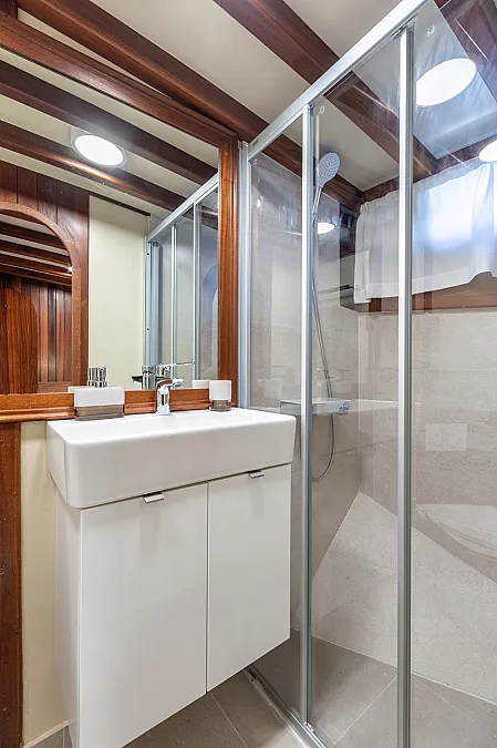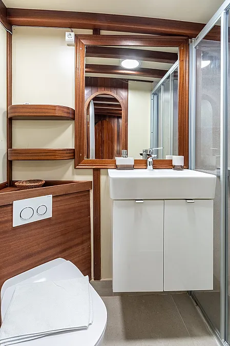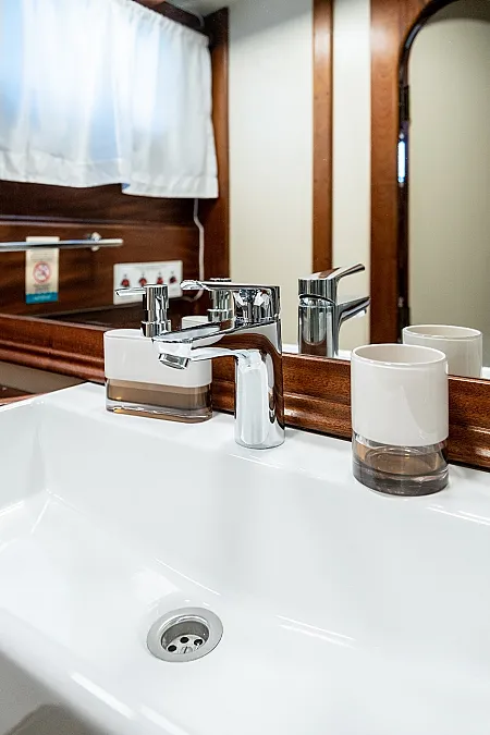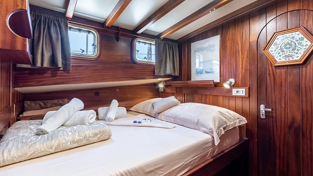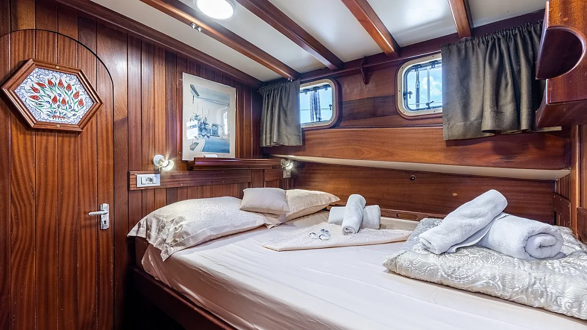 ANGELICA accommodates 10 guests in 5 spacious and comfortable cabins. 4 staterooms feature double beds, and 1 cabin is with twin sleeping places (2 beds 2m x 0,8m each). All the cabins have private ensuite facilities.