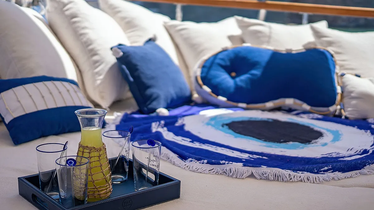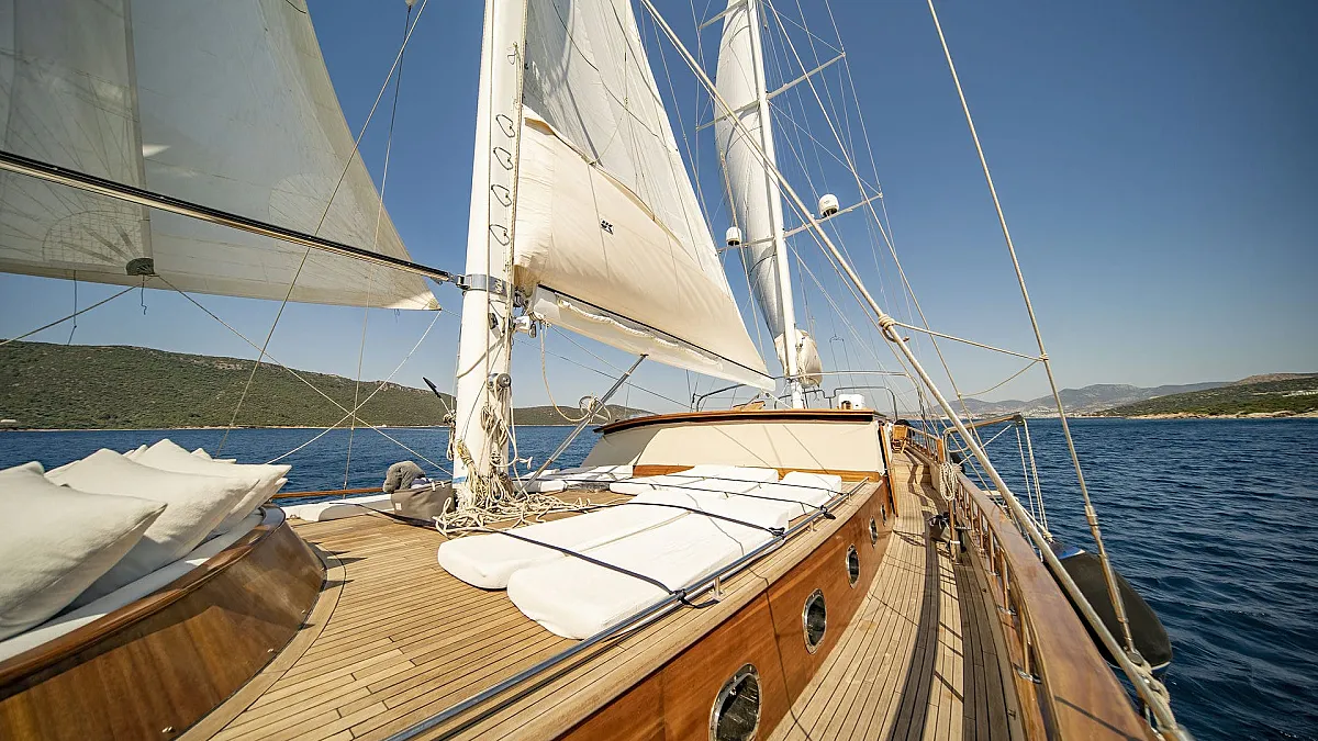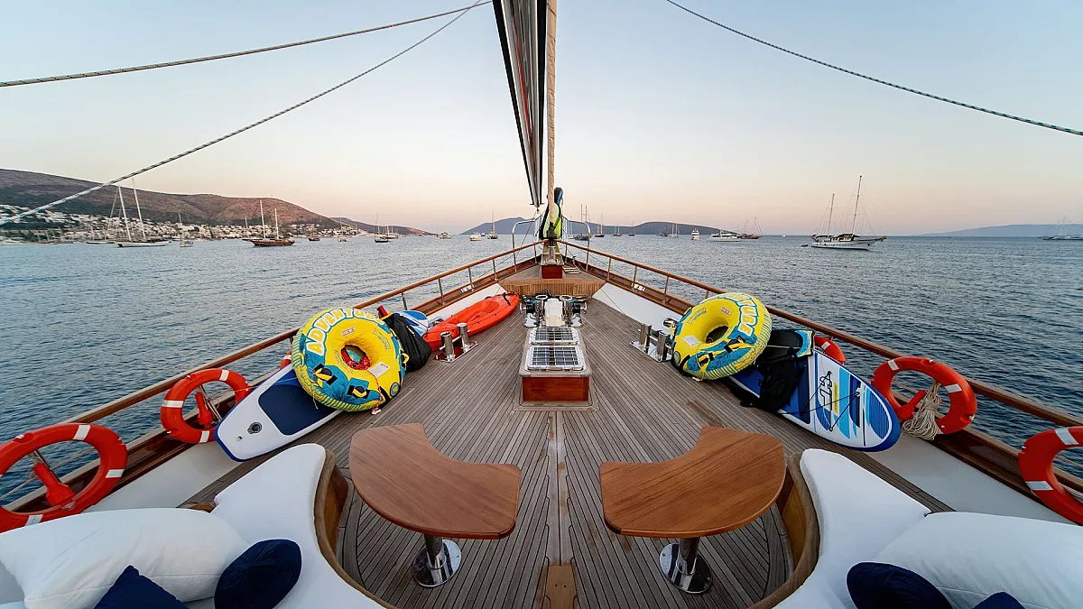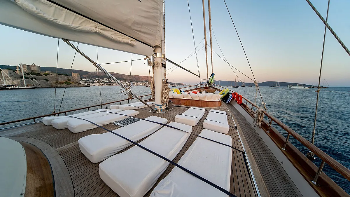 Sun sail for shade in front of the gulet