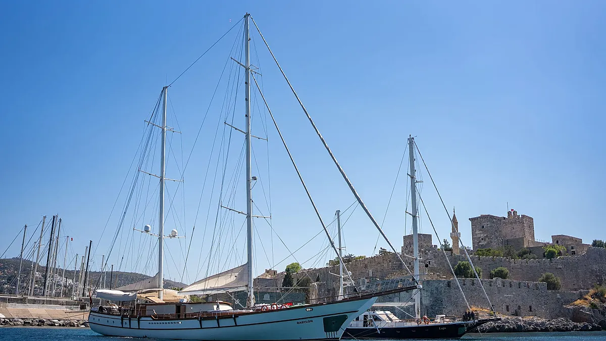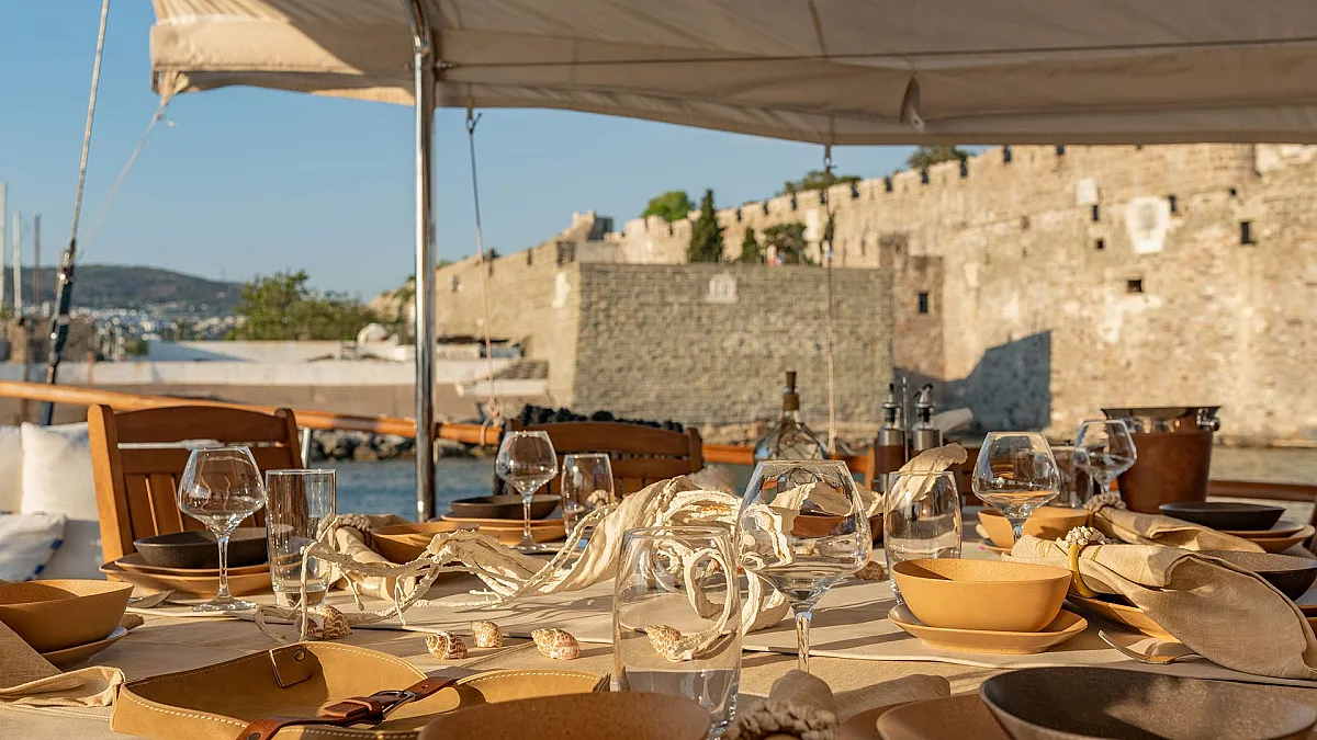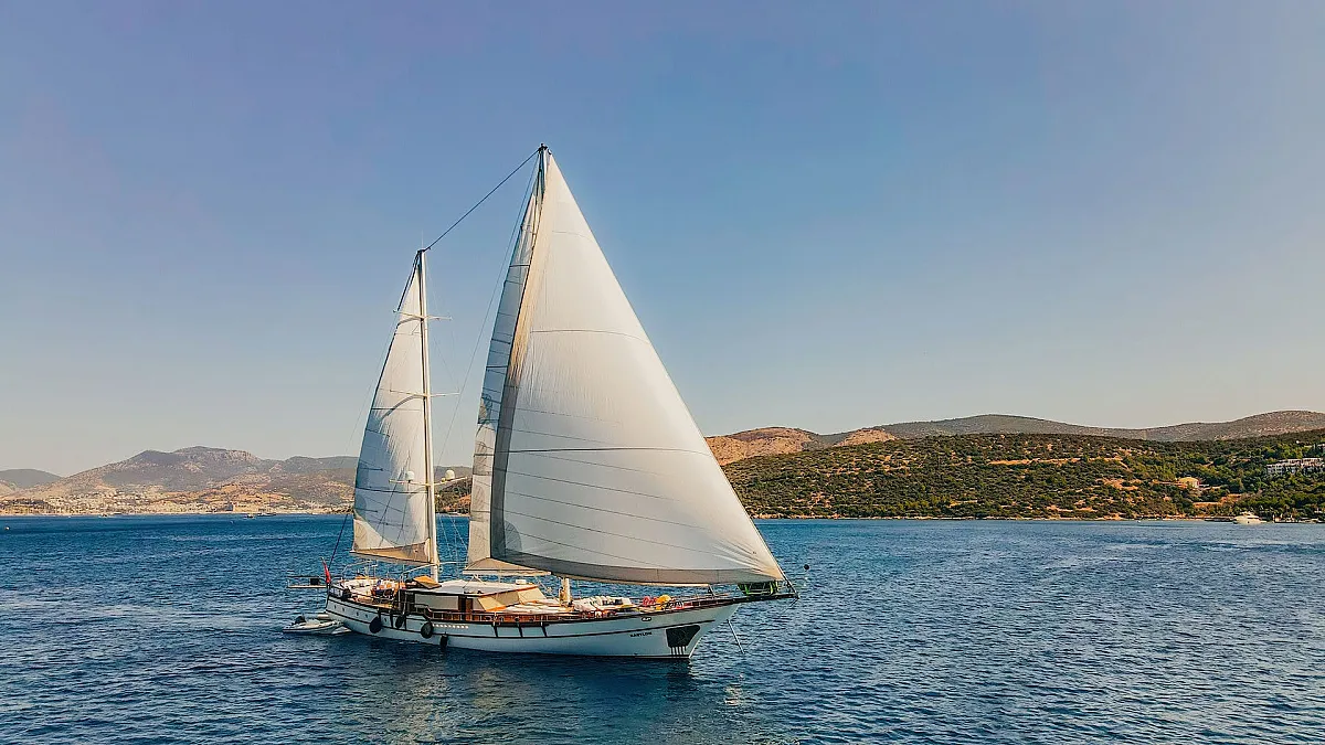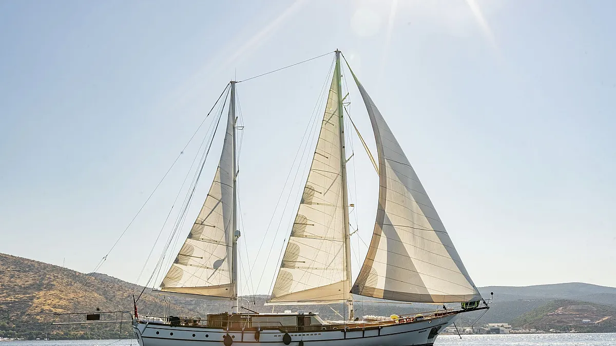 Sun sail for shade in front of the gulet