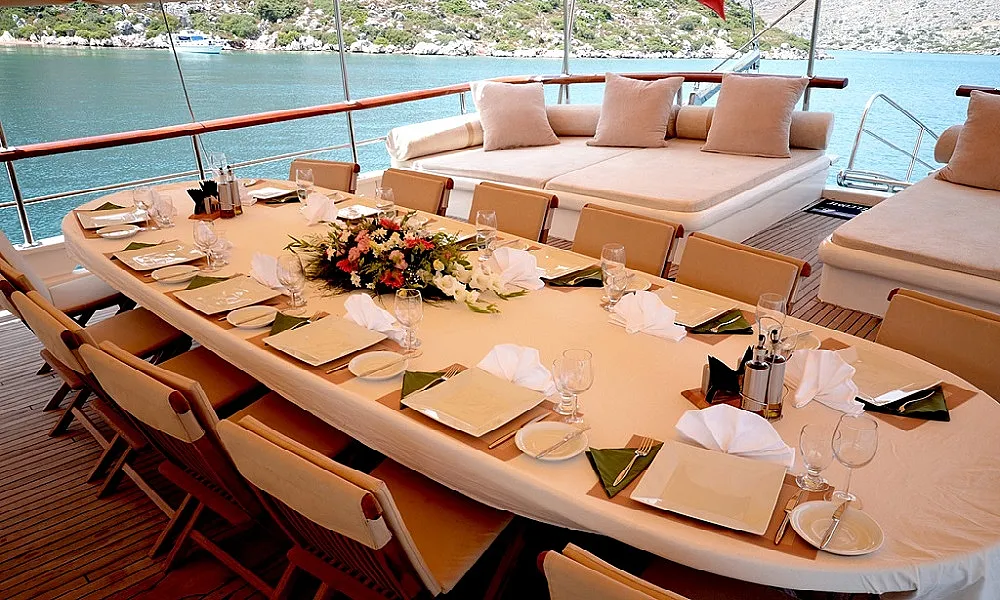 VAT, all meals and drinks for the charter, fuel for motor-operated equipment (tender, water sports), all marinas, all land tours, transfers, any personal expenses of the guests, crew gratuity (10-15% from the charter fee). Fuel surcharge for portion of charter outside of Turkish waters, any customs expenses if applicable.