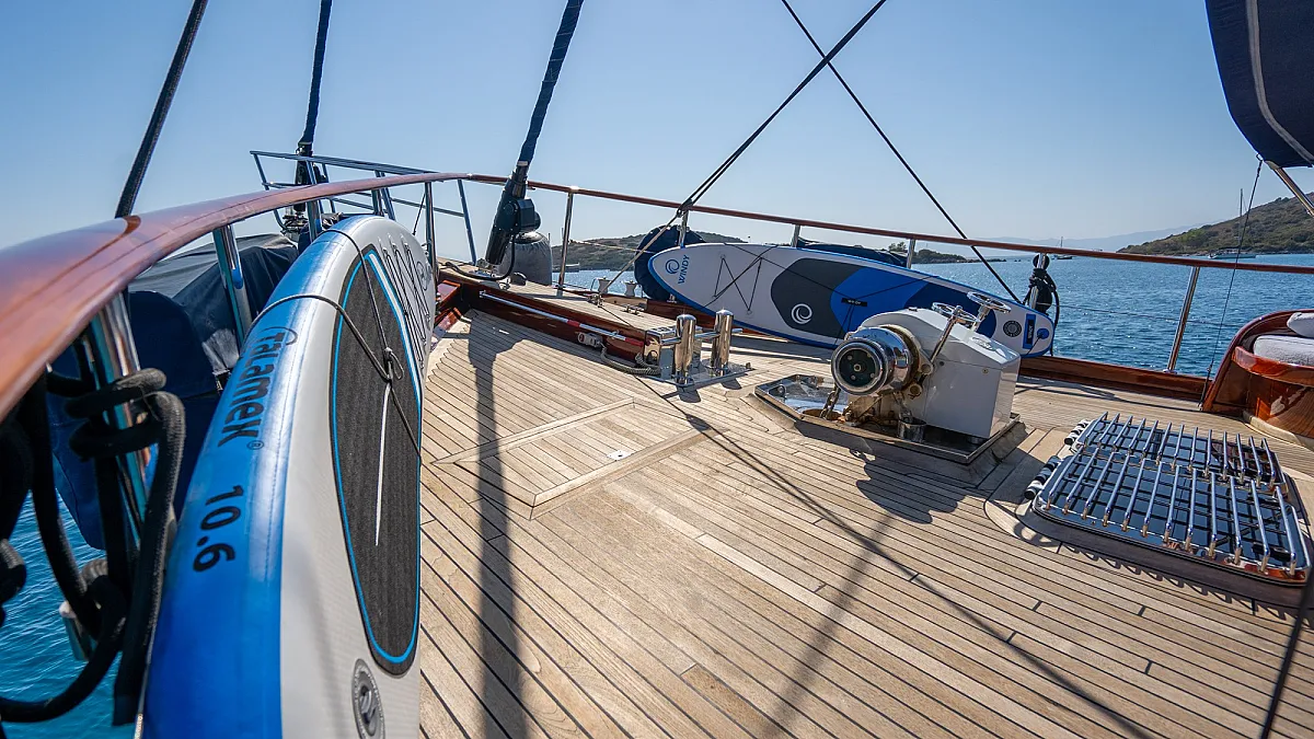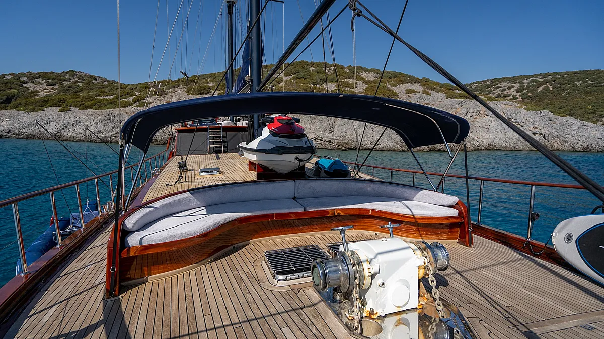 Her professional crew, numbering five, knows Turkey and Greece cruising grounds very well.