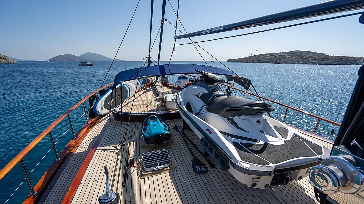 The yacht holds a wide range of water toys to entertain both kids and adults.