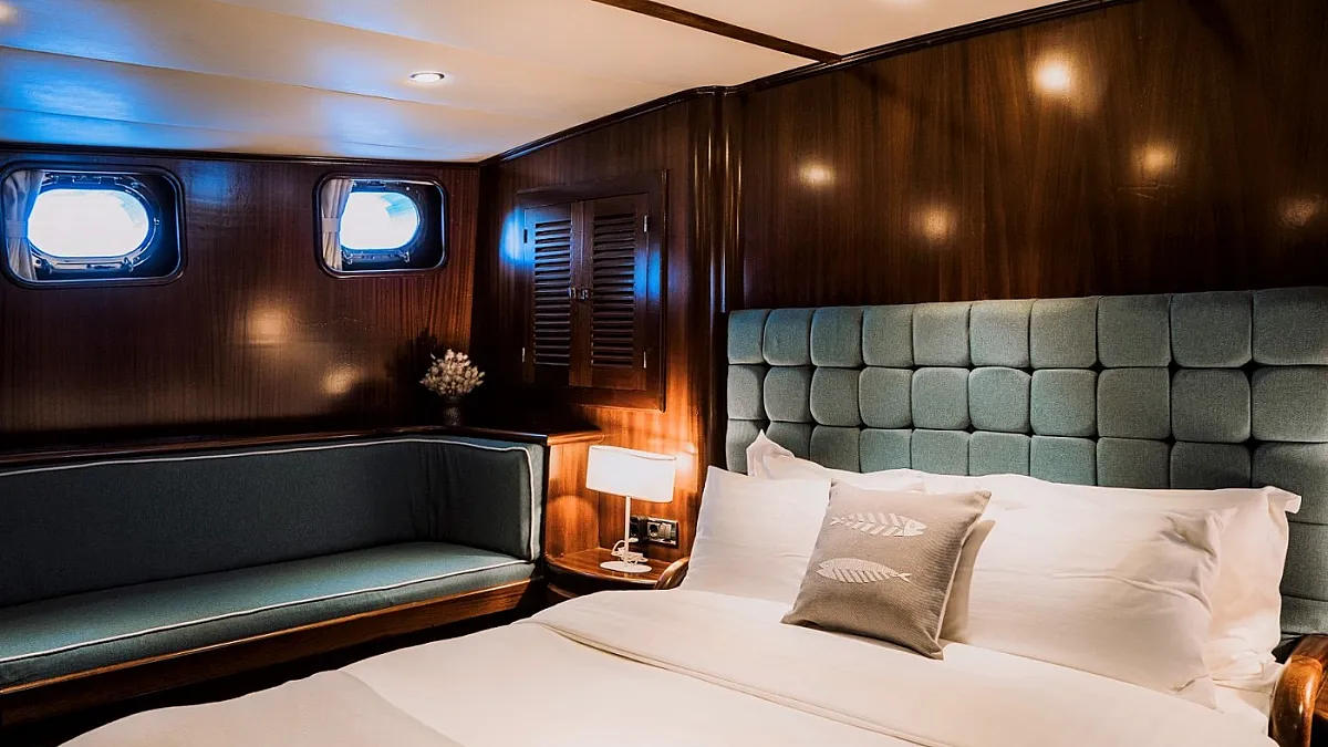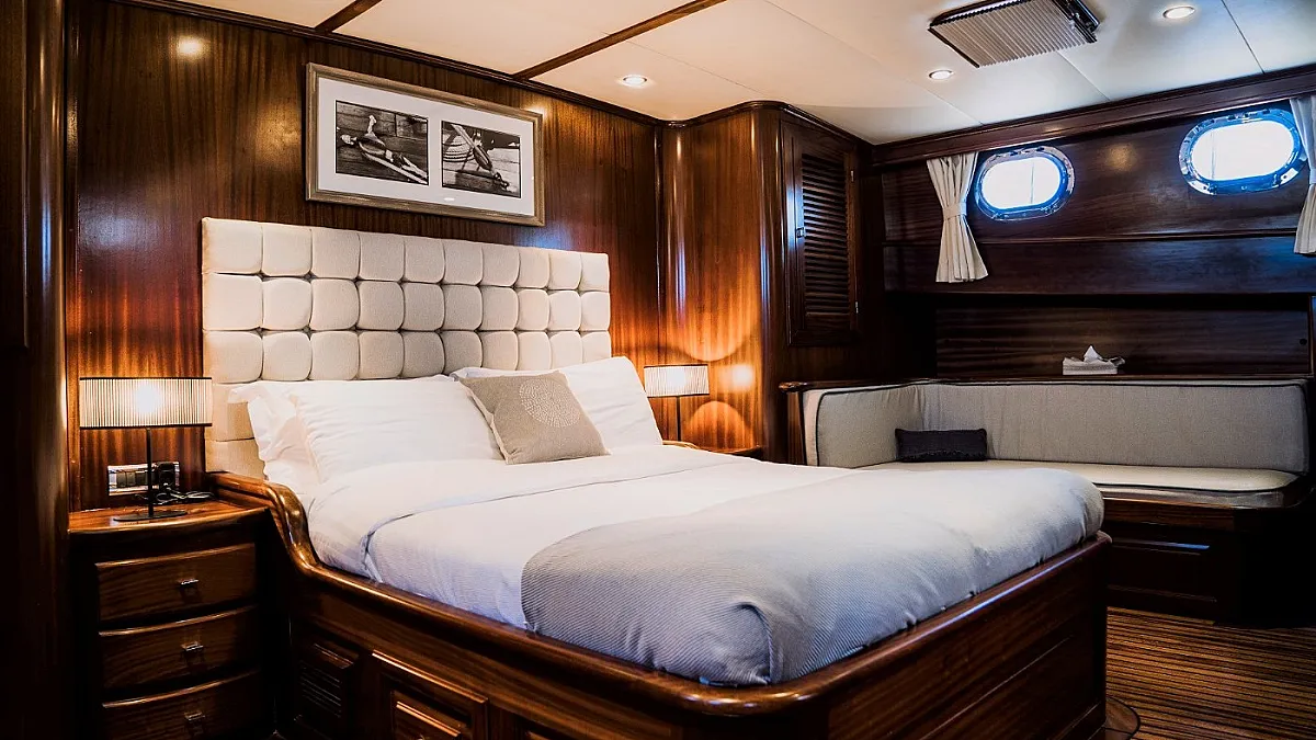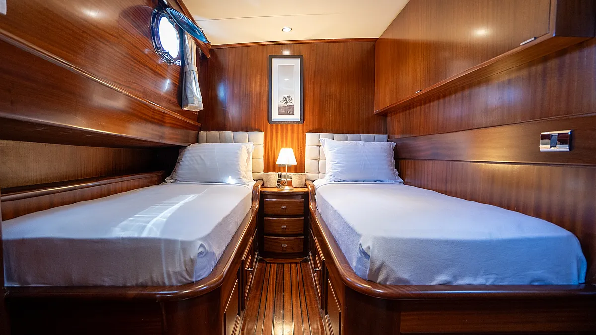 CAPRICORN 1 accommodates up to 11 guests in five comfortable cabins: two masters and three twins. Each stateroom features ensuite facilities. One of the twin cabins has a pullman berth, perfect for a child.