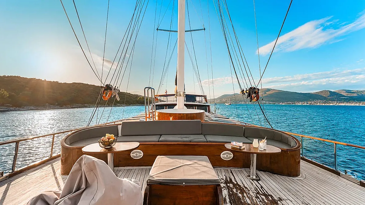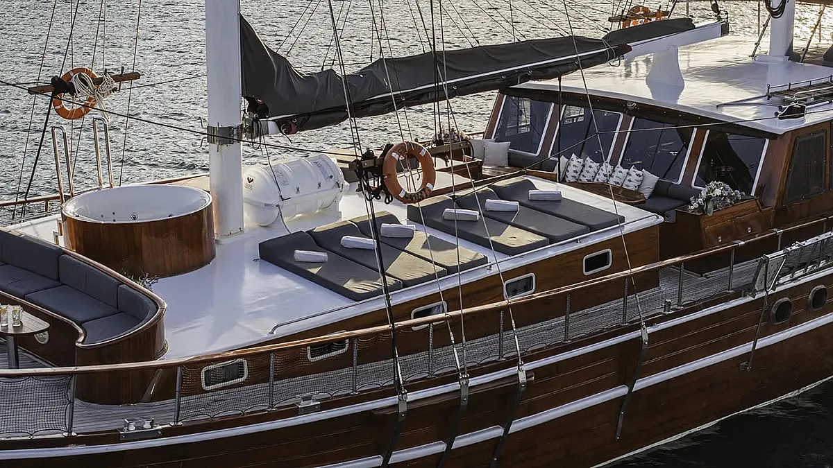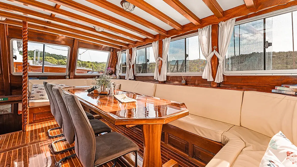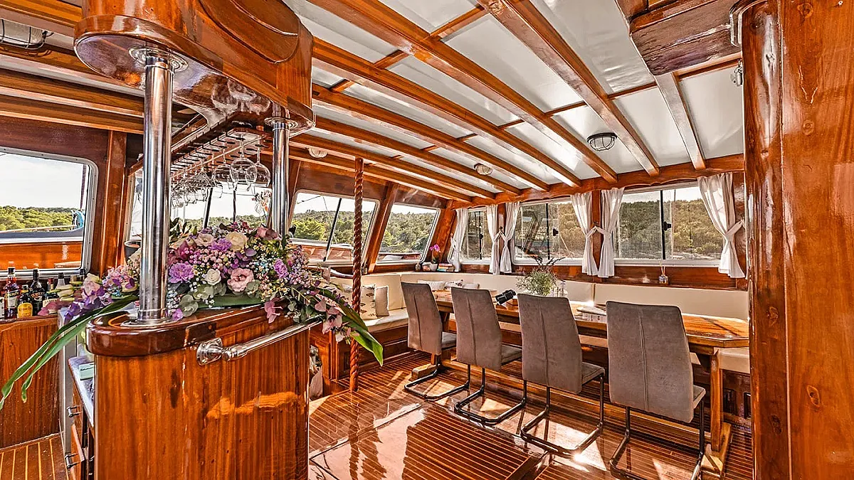 Charter rates include VAT, accommodation (maximum number of 14 guests sleeping in 7 cabins), fuel for cruising (4 hours/day), crew - 5 members (Captain, Chef, Deckhand, Waiter, Housekeeper), A/C -12 hours/day till midnight (while the yacht is out of port), linen (bed sheets, bathroom, and beach towels), Wifi