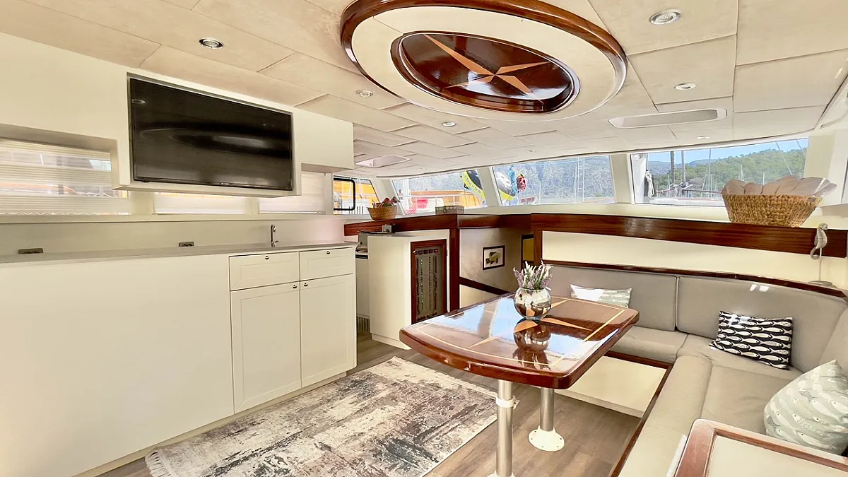 Charter rate includes, service of crew, fuel for a regular weekly cruise of approx. 100-110 sm in Turkish waters, AC up to 12 hours a day (Please note that AC can not be used in one block) - 24 hours AC possible with 1250 € week/extra fee, transitlog for Turkish water, harbour fees (starting, ending ports) - along the Turkish coastline / except private marinas, bed linen, interior towels & exterior sunbathing towels (will be changed once in the mid-week), limited free Wi‐Fi