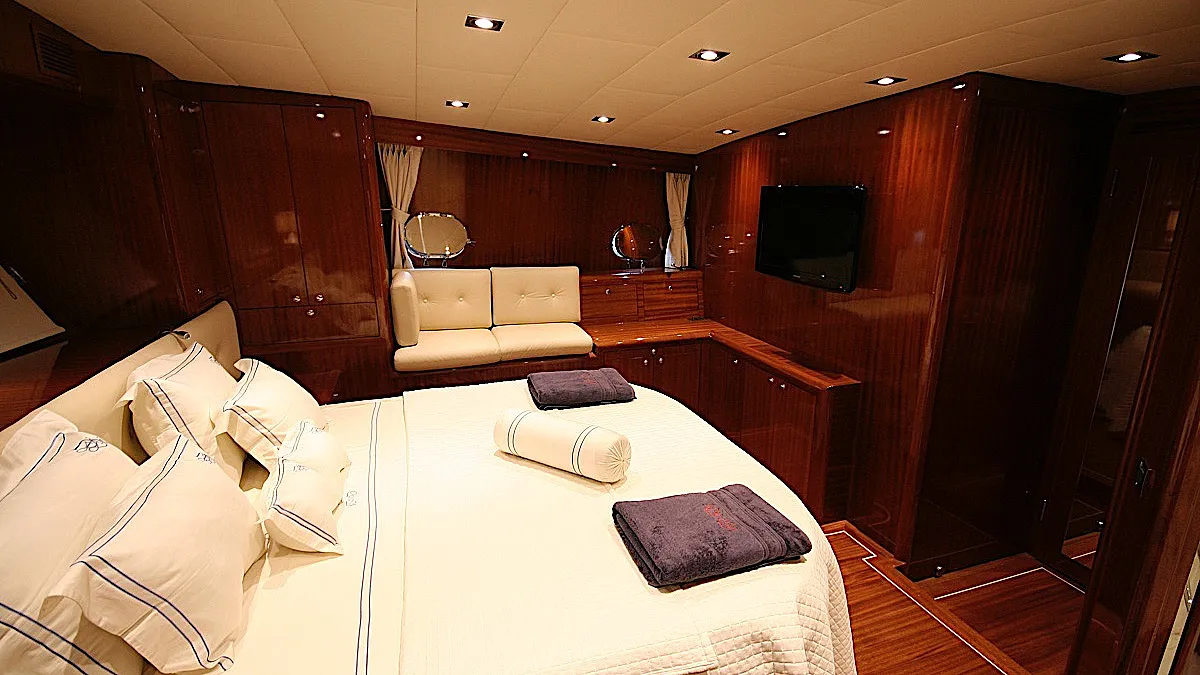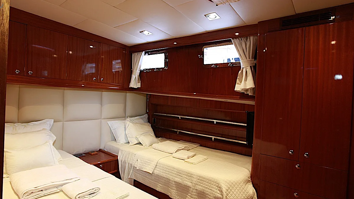 The luxury motor-sailing gulet, DIDI was built in Bodrum in 2010. She is 24-metres in length and accommodates a party of 8 guests in 4 cabins: two large master cabins, a twin and a double. With her crew of three on hand to ensure you complete comfort and safety at all times, this vessel is an excellent choice for a cruise along the turquoise coast of Turkey.