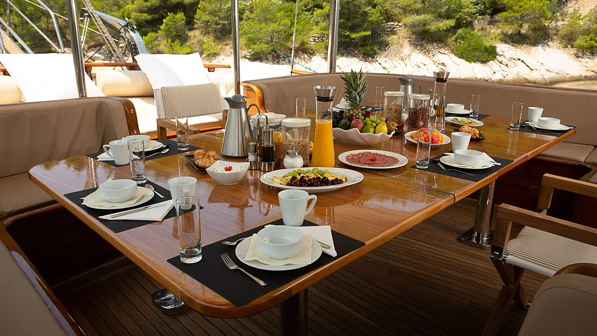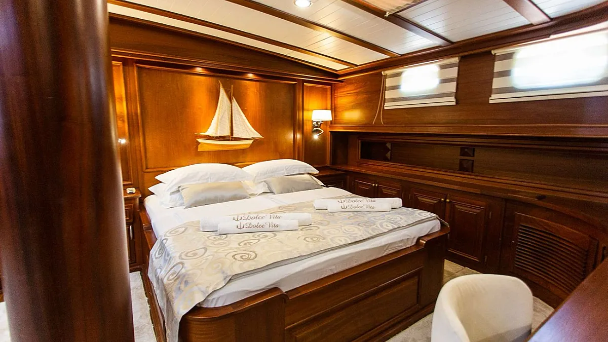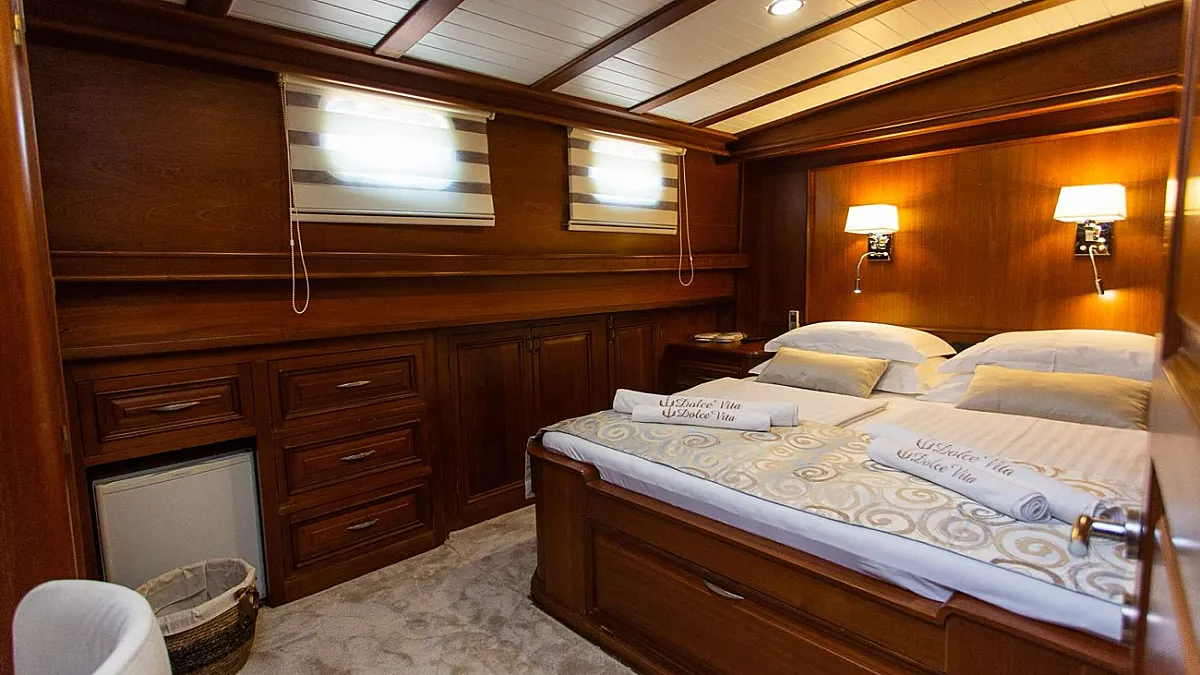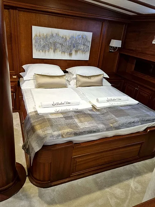 Magnificently constructed using only the finest materials, DOLCE VITA offers spacious accommodation for up to 10 guests in two master cabins, two double-berth cabins and one triple cabin with double and single berth combination. All cabins are air-conditioned and are fitted with TV, minibar and DVD player.
