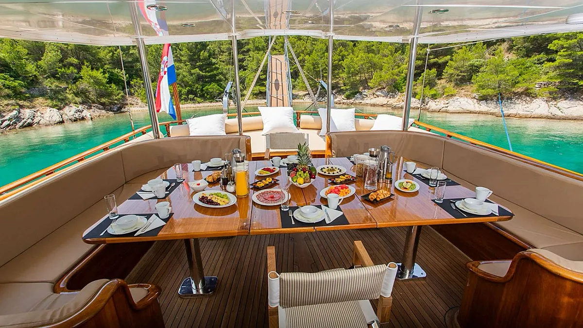 Gulet DOLCE VITA is based in the historic city of Trogir, Croatia ansd guests can choose to embark in this pretty port. DOLCE VITA's professional crew of four are happy to greet guests upon their arrival in a variety of Croatian ports, so please let us know your preference.