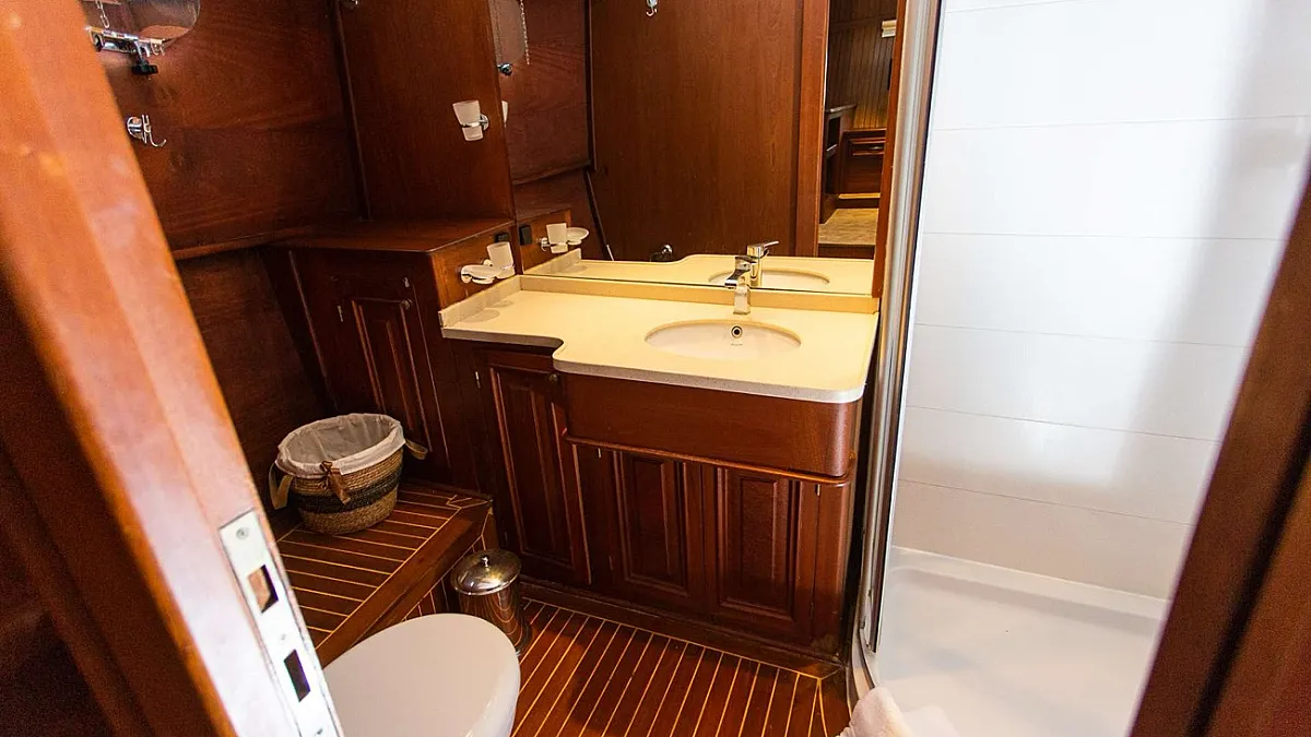The DOLCE VITA accommodates up to 10 guests in five spacious and well laid-out guest cabins. Guest cabins consist of one master cabin with queen-size berth, 2 triple cabins, each with a double and a twin berth and two double cabins each with a double berth. Each cabin is fitted with air conditioning and an ensuite bathroom complete with shower stalls, vanity and for the ladies, hairdryers!