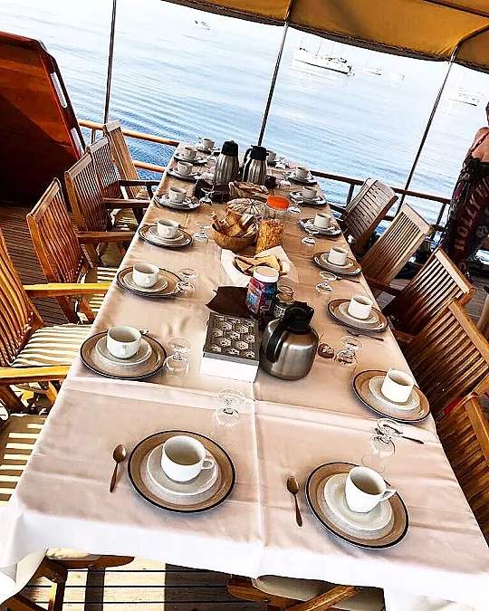 Yacht price includes insurance of the yacht, wages and food for the crew, service on board, cabins' daily cleaning, 3 Italian crew (skipper, cook, sailor/maid), fuel for 4 hours sailing per day, using water and equipment on board (fishing gear, snorkeling, etc, if available), bed sheets and towels a change per week, sun towels, generator working hours for the air condition is limited to 4 hrs a day (no use during the night)