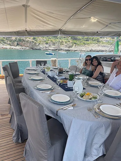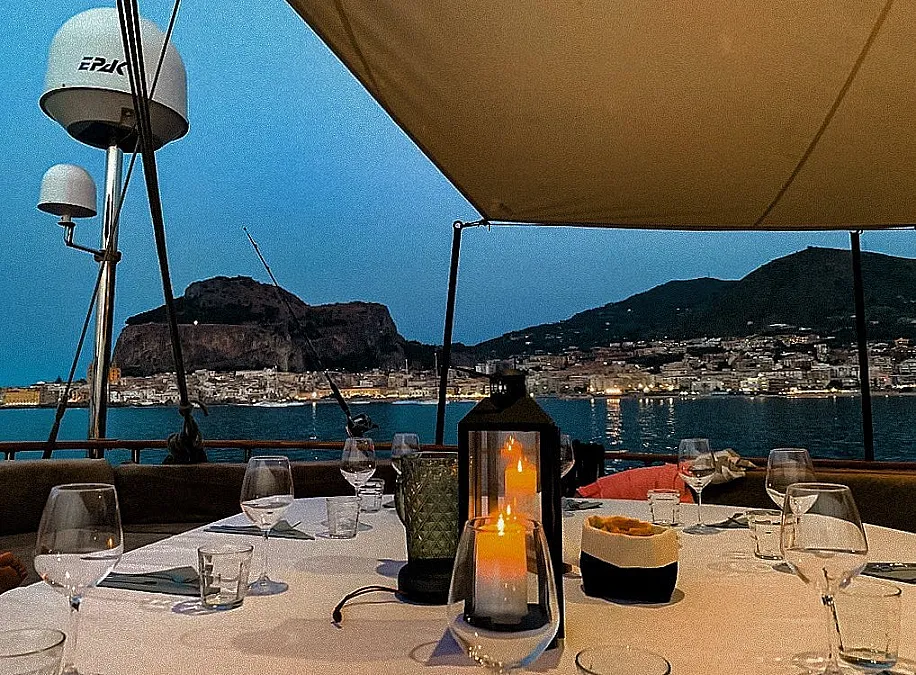 Charter rate includes hire of the yacht with crew of 4; crew wages; fuel for main engine for an average of 4 hours/day, fuel for generators and air conditioned between h09.00 and h24.00, port fees on the disembarkation day if in Palermo or Capo d'Orlando, bottled water
