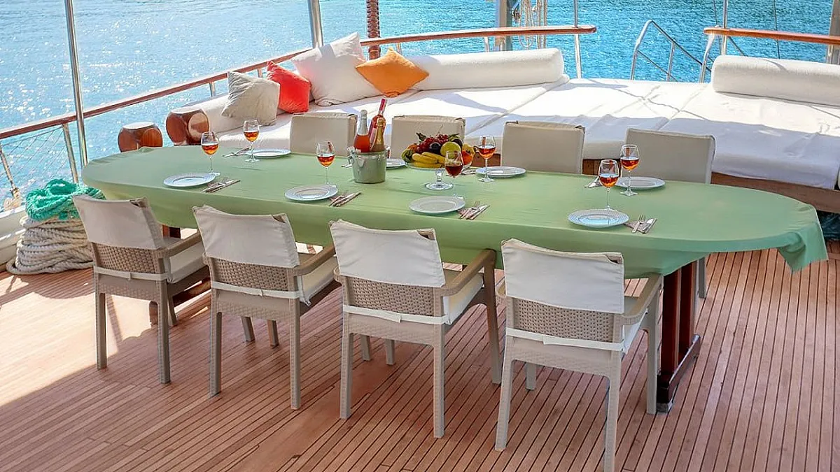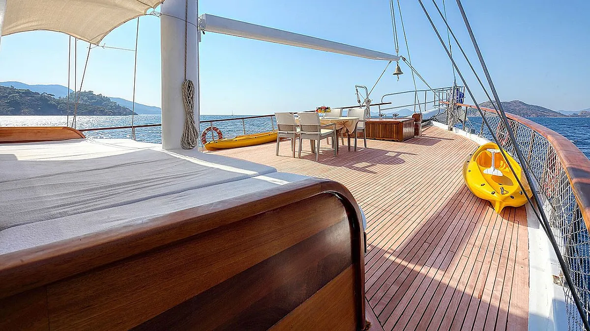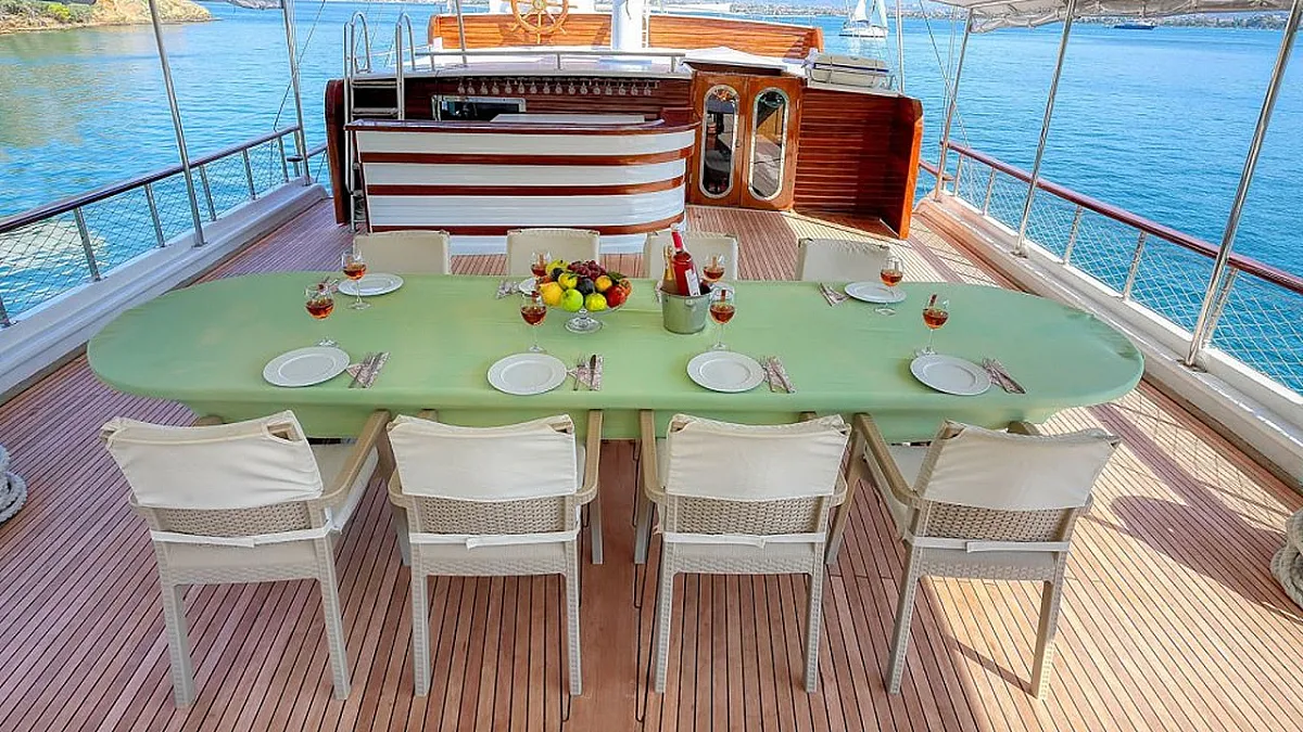 VAT, all meals and drinks for the charter, fuel for motor-operated equipment (tender, water sports), all marinas, all land tours, transfers, any personal expenses of the guests, crew gratuity (10-15% from the charter fee). Fuel surcharge for portion of charter outside of Turkish waters, any customs expenses if applicable.
