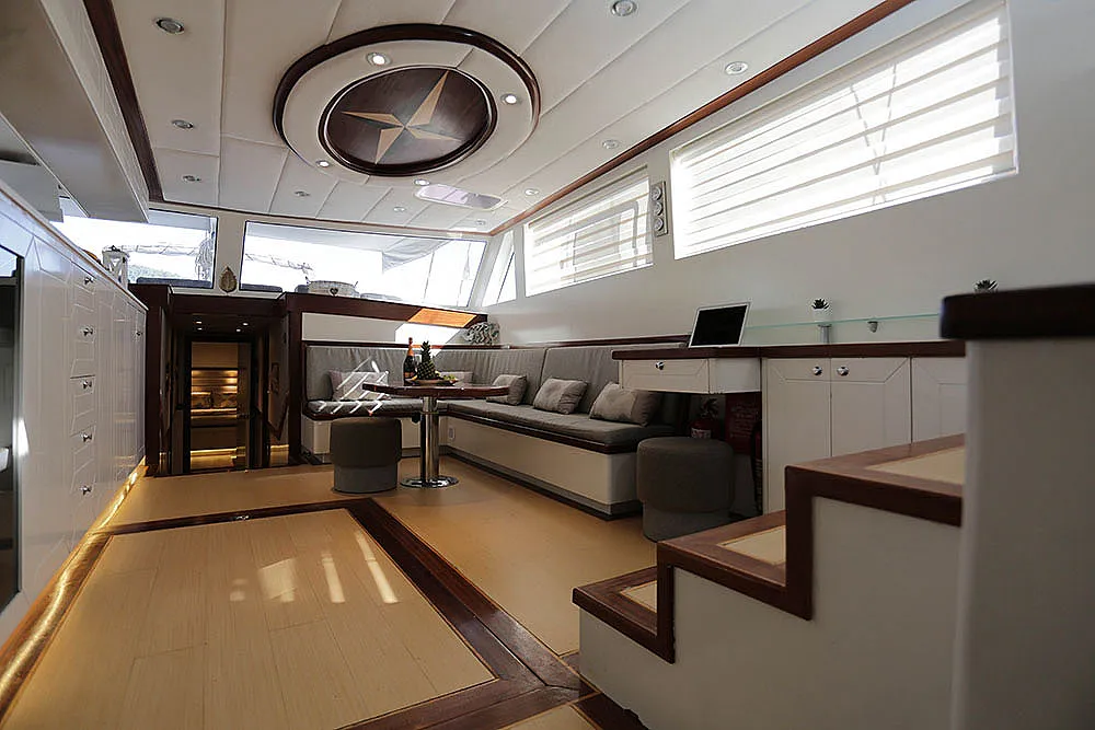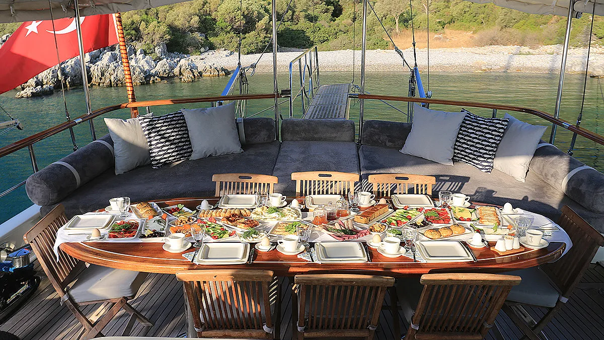 Charter rate includes, service of crew, fuel for a regular weekly cruise of approx. 100-110 sm in Turkish waters, AC up to 12 hours a day (Please note that AC can not be used in one block) - 24 hours AC possible with 1250 € week/extra fee, transitlog for Turkish water, harbour fees (starting, ending ports) - along the Turkish coastline / except private marinas, bed linen, interior towels & exterior sunbathing towels (will be changed once in the mid-week), limited free Wi‐Fi