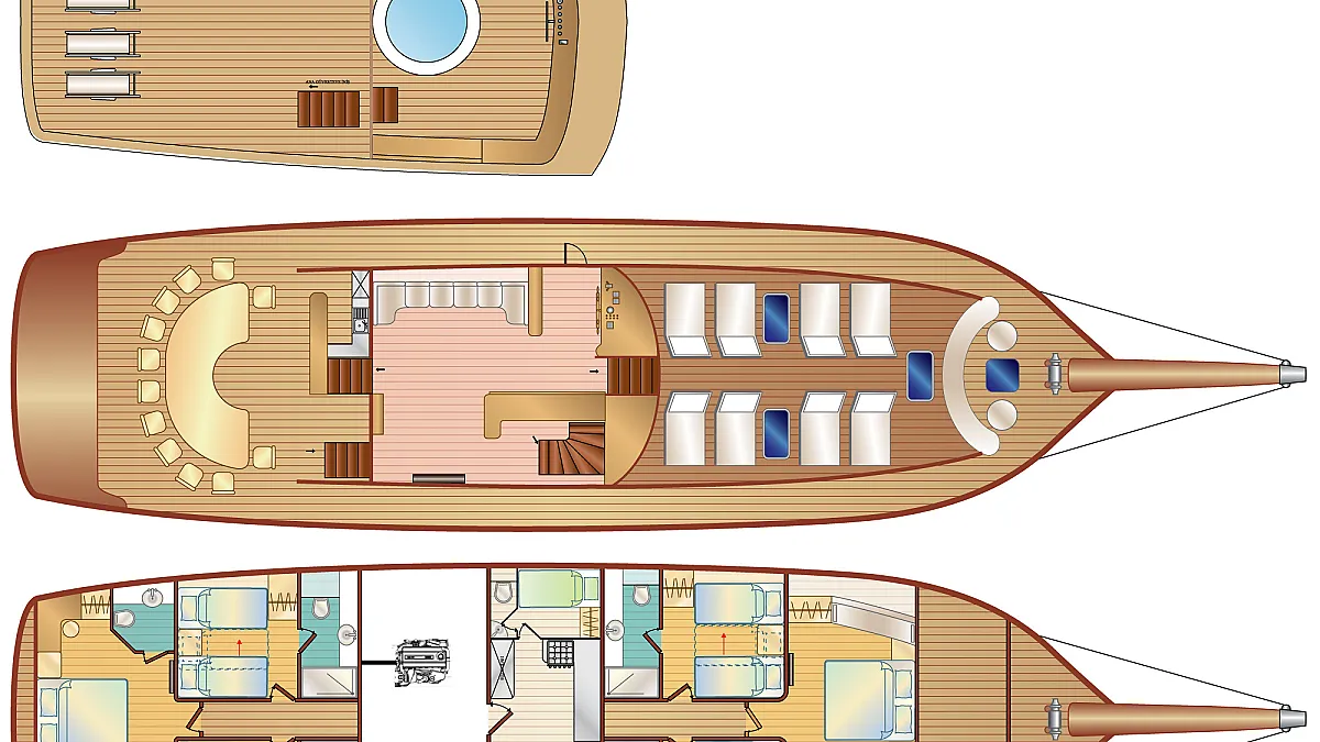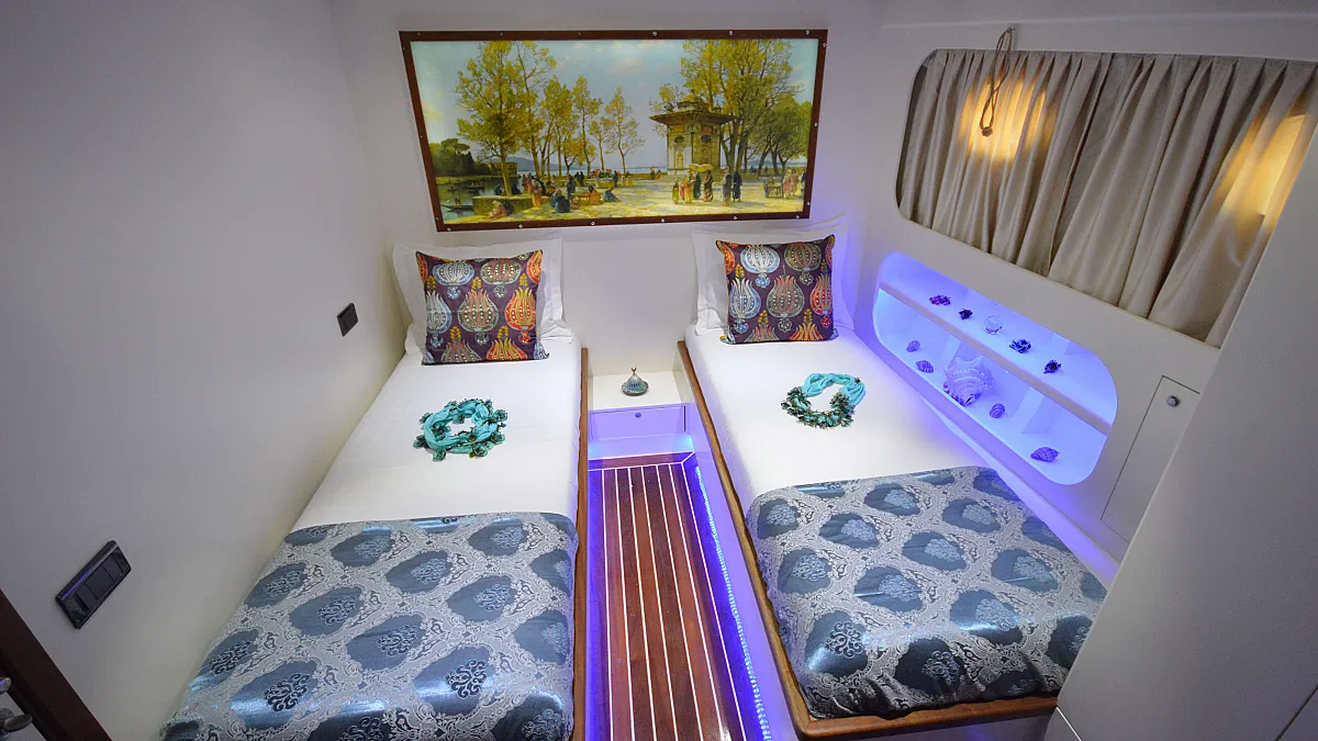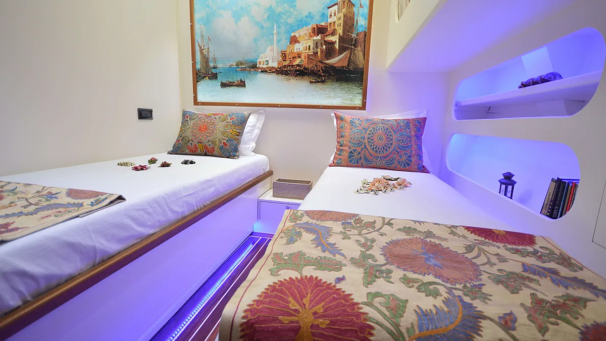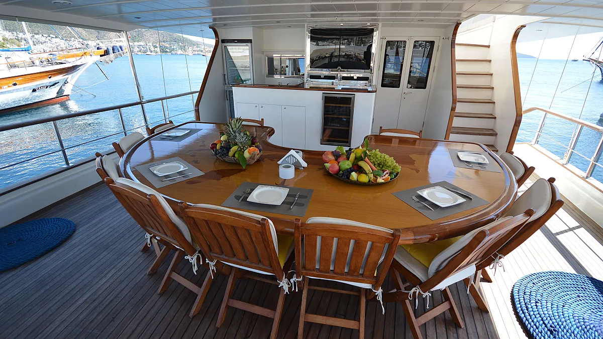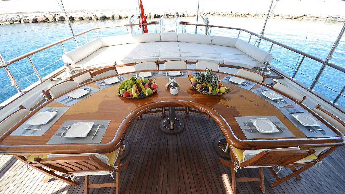 VAT, all meals and drinks for the charter, fuel for motor-operated equipment (tender, water sports), all marinas, all land tours, transfers, any personal expenses of the guests, crew gratuity (10-15% from the charter fee). Fuel surcharge for portion of charter outside of Turkish waters, any customs expenses if applicable.