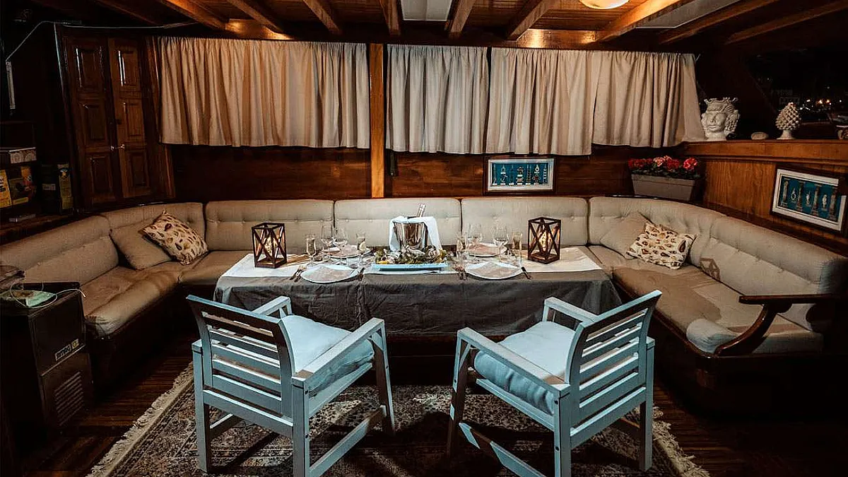 The price includes, VAT, boat rental for exclusive use,4 crew members (captain, sailor, cook, steward), welcome cocktail, daily cleaning, linens, towels, bath towels, fuel for max 4 hours navigation per day, fuel for generator 4 hours per day, last night moorings, use of onboard equipment.