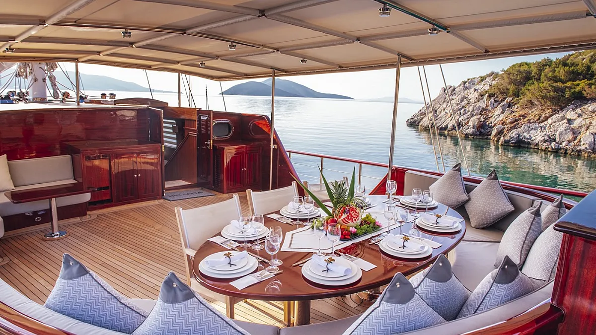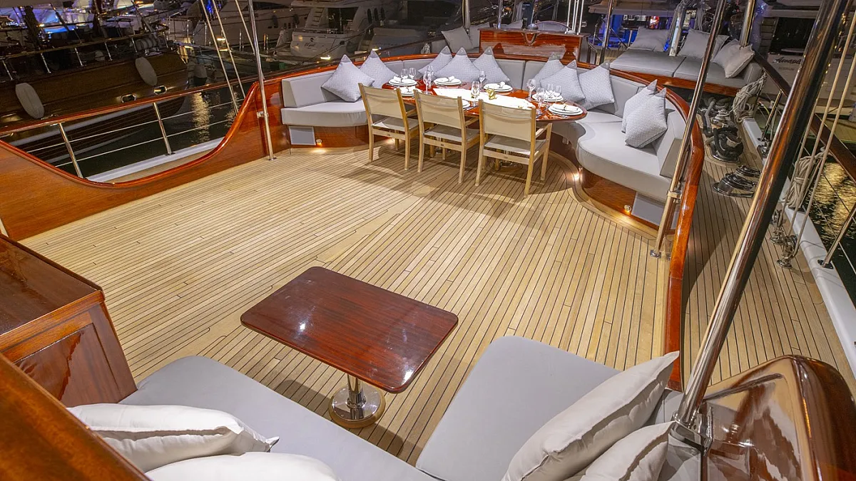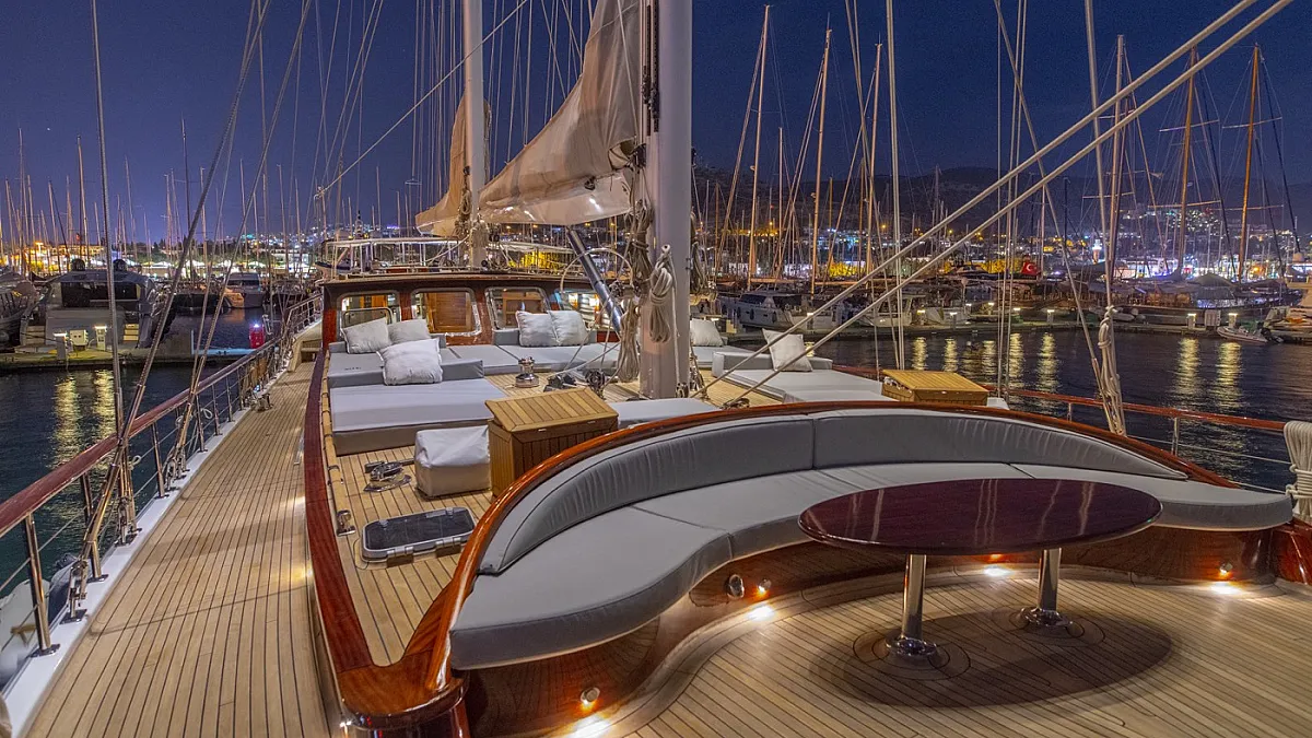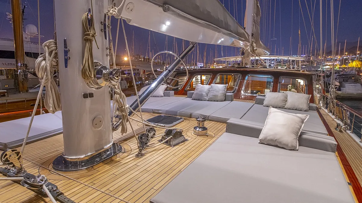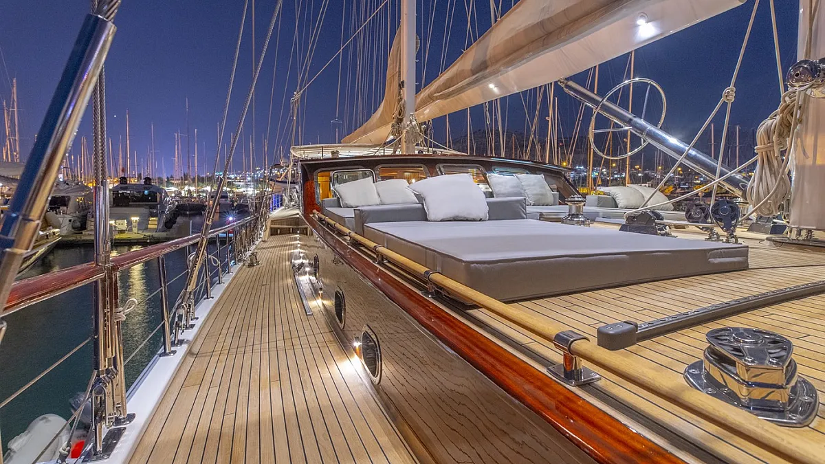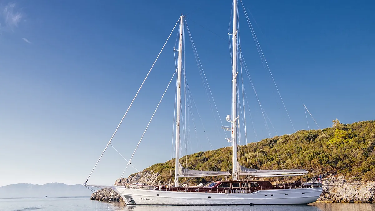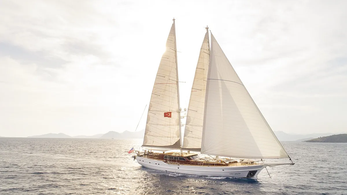The luxurious 42-metre gulet, HIC SALTA was built in 2006 and refitted in 2017. This luxury vessel's sophisticated exterior design and engineering are the work of the team at Valena Yachting, who were, back in the early 2000s, responsible for producing with a small fleet of superior sailing gulets which are widely regarded as some of the finest vessels ever built in Turkey.