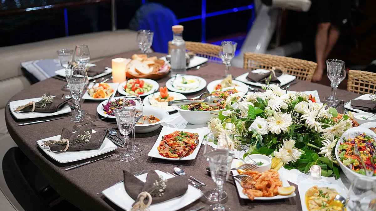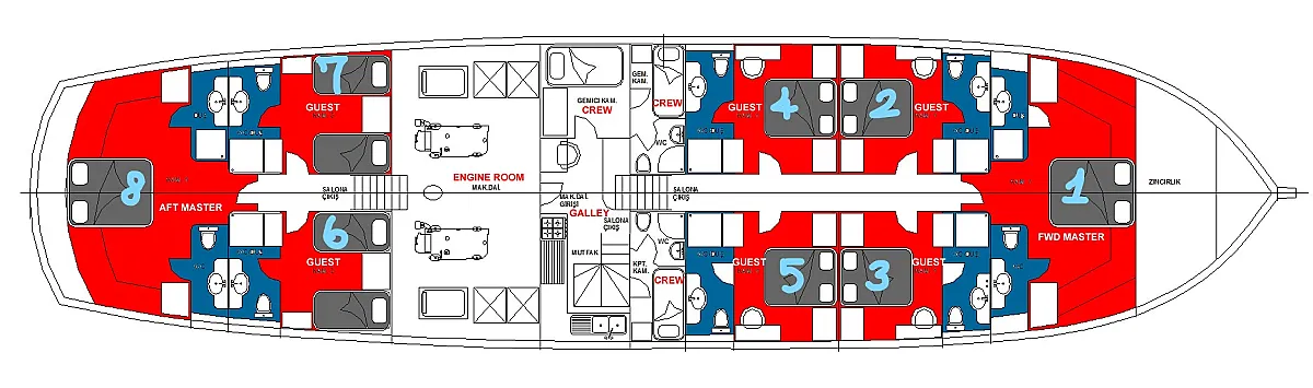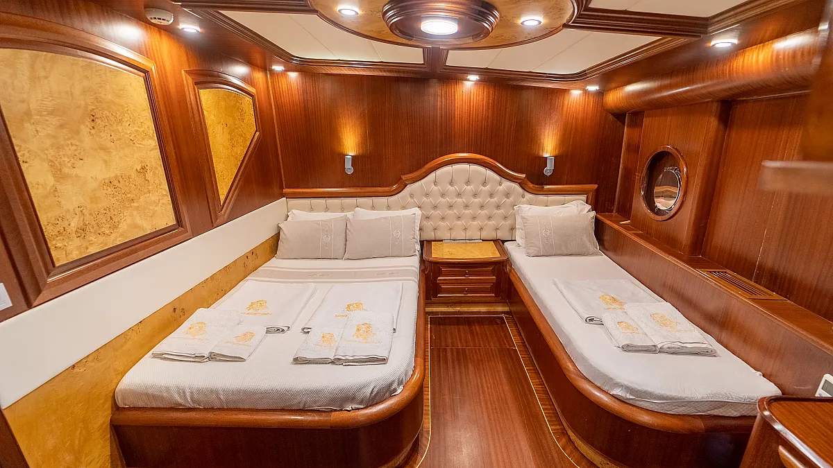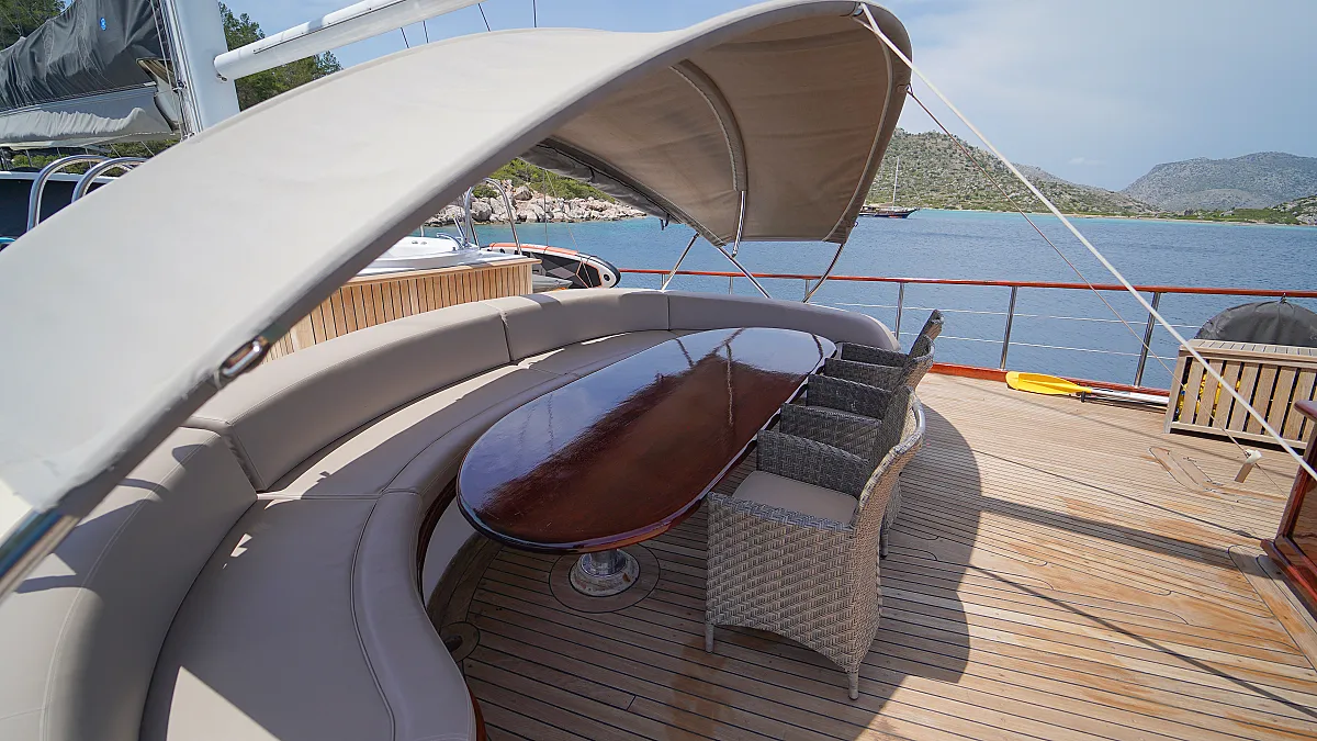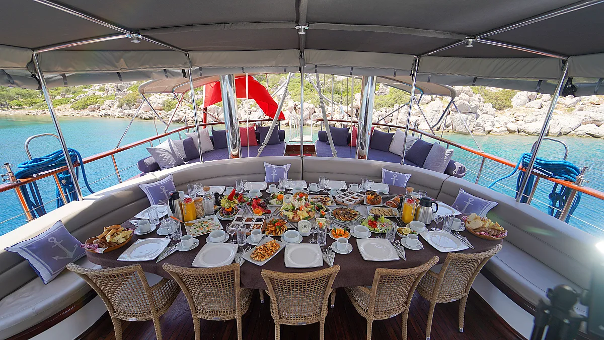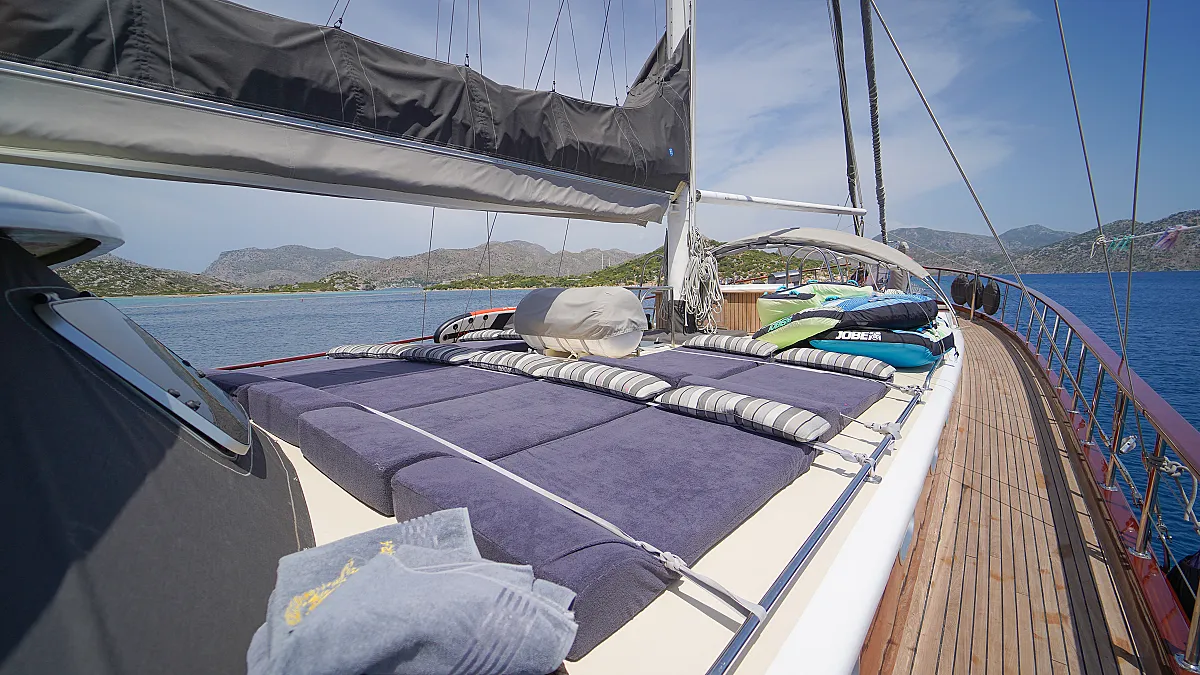 Charter rate includes, yacht insurance, fuel for average cruising time a day, daily cabin and bathroom cleaning, crew services, mooring fees in Türkiye, rent of the yacht, service boat, canoes, paddle boards, etc., ship's laundry (if available)