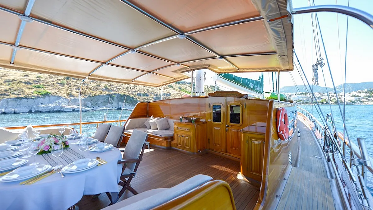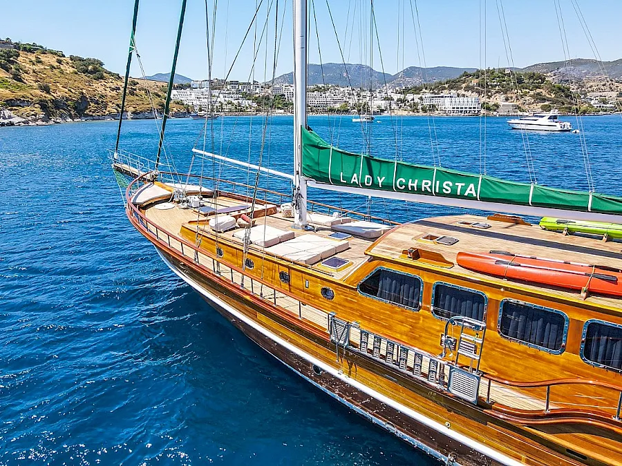 LADY CHRISTA is a classic 36-m Turkish gulet. She is available for rent in Bodrum, Marmaris, Fethiye and other Turkish cities. She has 6 crew who organize and take care of every holiday matter of the guests who choose LADY CHRISTA for their vacation.