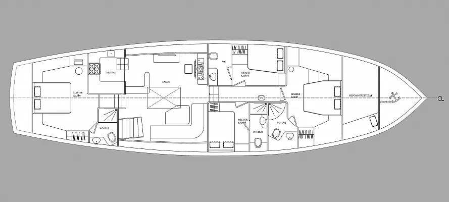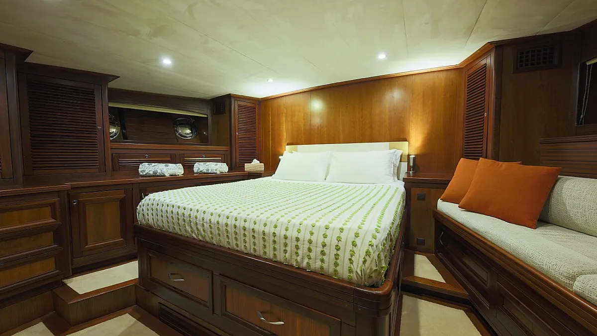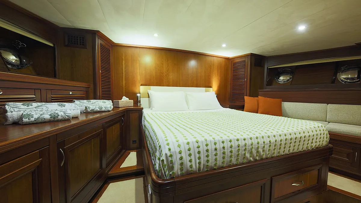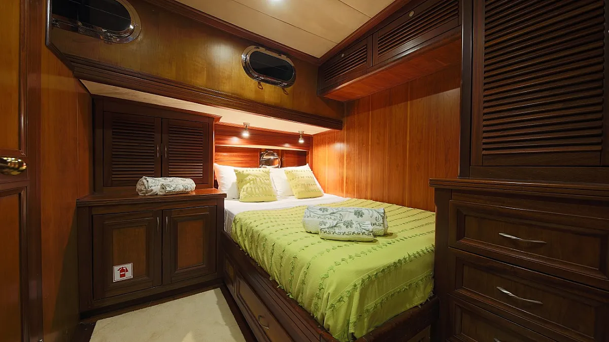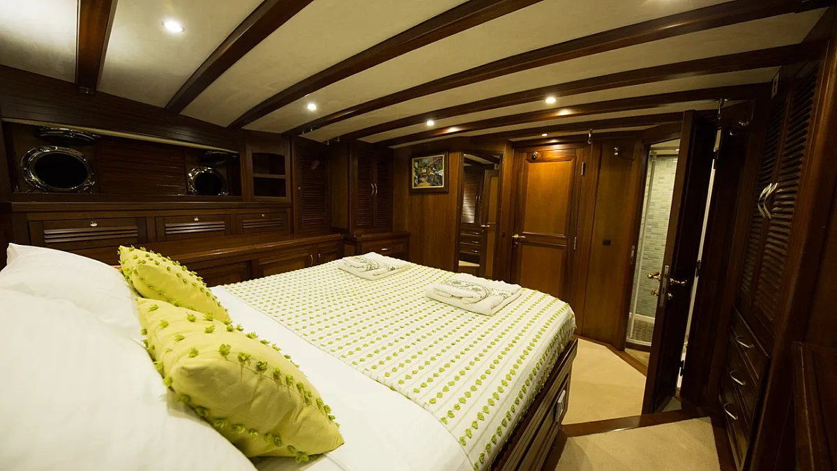 1 aft master cabin, 1 forward master cabin and 2 port and starboard double cabins