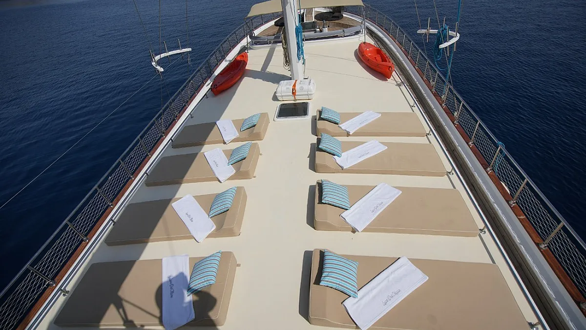 VAT, all meals and drinks for the charter, fuel for motor-operated equipment (tender, water sports), all marinas, all land tours, transfers, any personal expenses of the guests, crew gratuity (10-15% from the charter fee). Fuel surcharge for portion of charter outside of Turkish waters, any customs expenses if applicable.