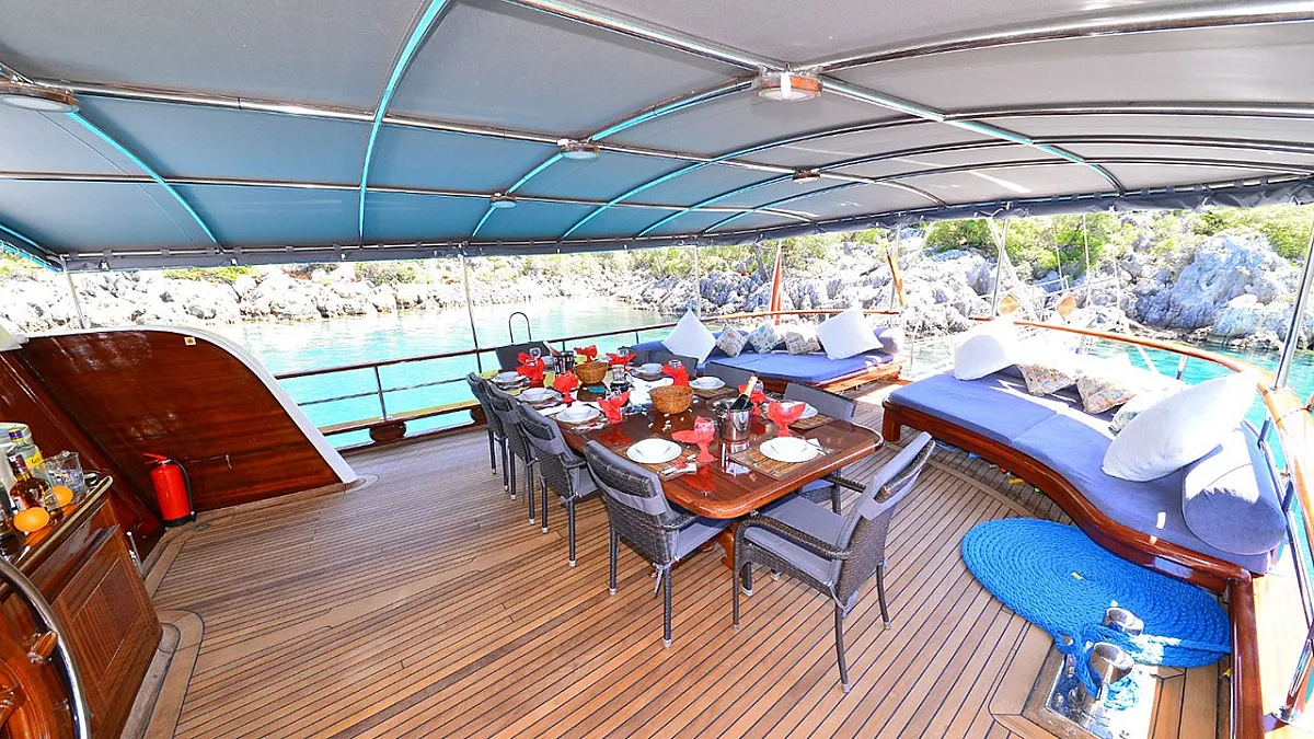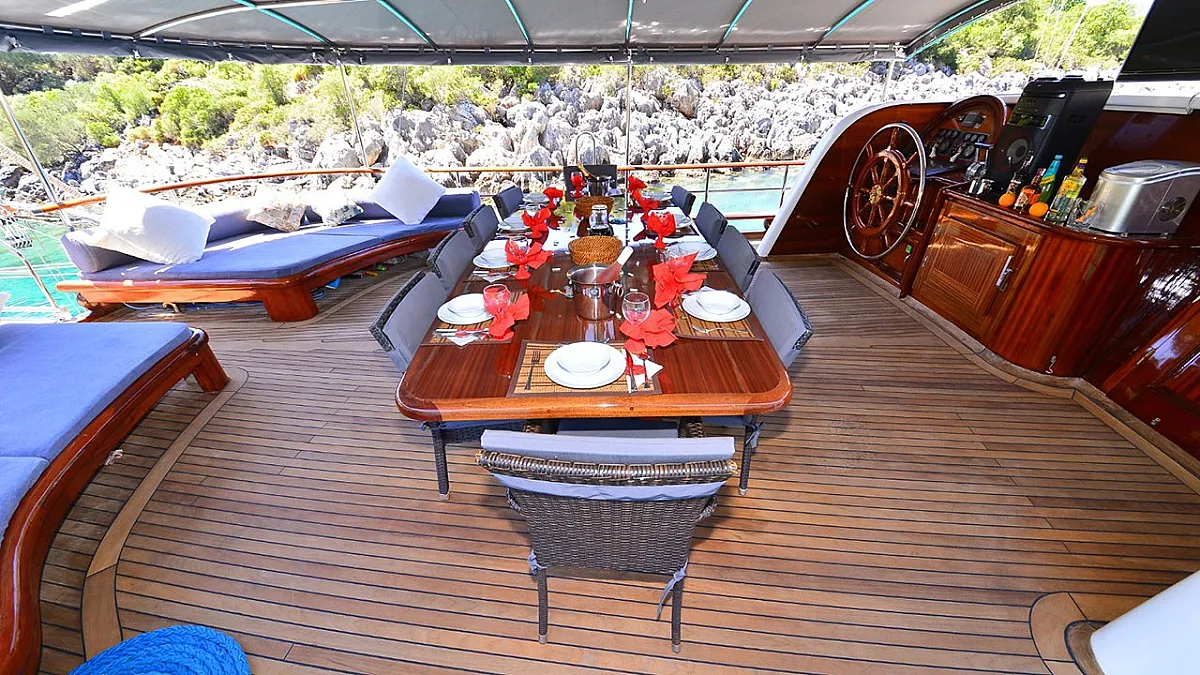 VAT, all meals and drinks for the charter, fuel for motor-operated equipment (tender, water sports), all marinas, all land tours, transfers, any personal expenses of the guests, crew gratuity (10-15% from the charter fee). Fuel surcharge for portion of charter outside of Turkish waters, any customs expenses if applicable.