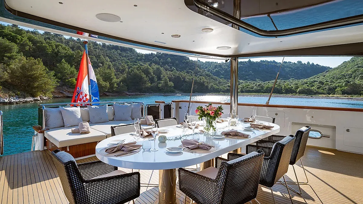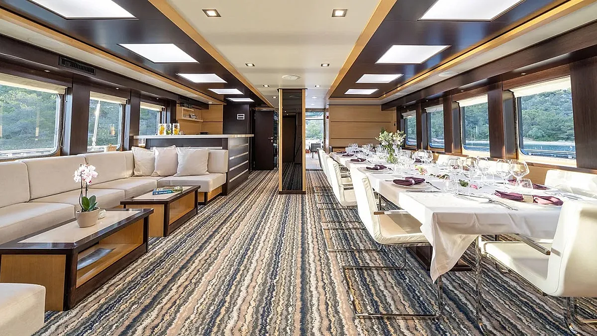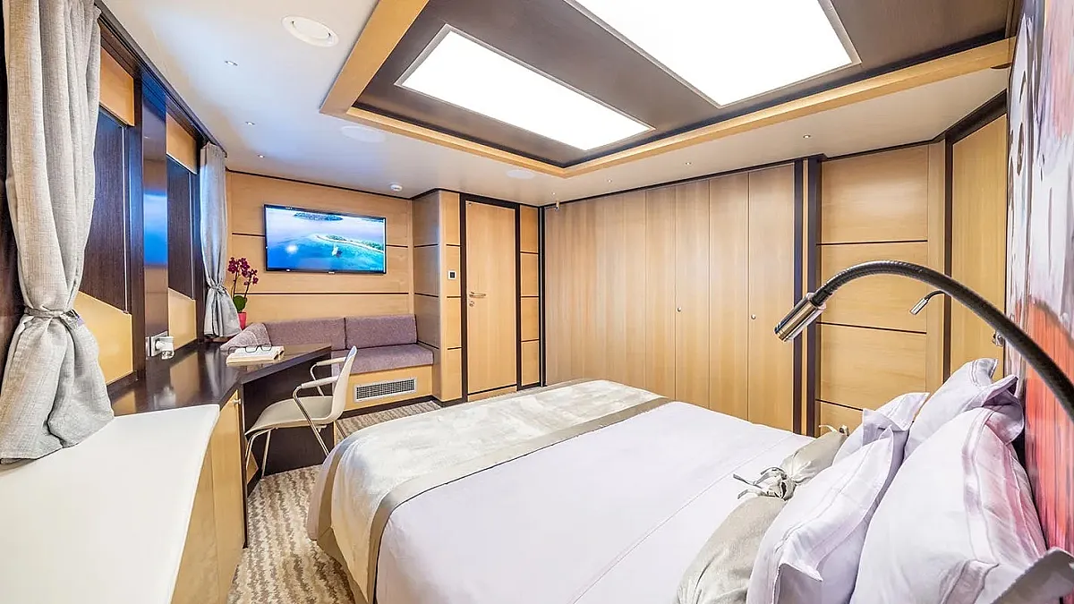 Charter rate includes, accommodation for maximum 12 guests in 6 cabins, crew - captain, Engineer, Chef, 2 Hostesses, 2 Deckhands, Steward, wifi
