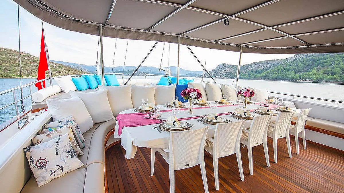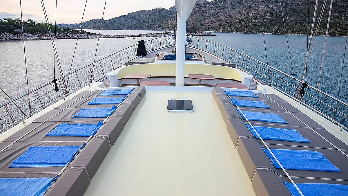 VAT, all meals and drinks for the charter, fuel for motor-operated equipment (tender, water sports), all marinas, all land tours, transfers, any personal expenses of the guests, crew gratuity (10-15% from the charter fee). Fuel surcharge for portion of charter outside of Turkish waters, any customs expenses if applicable.