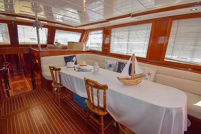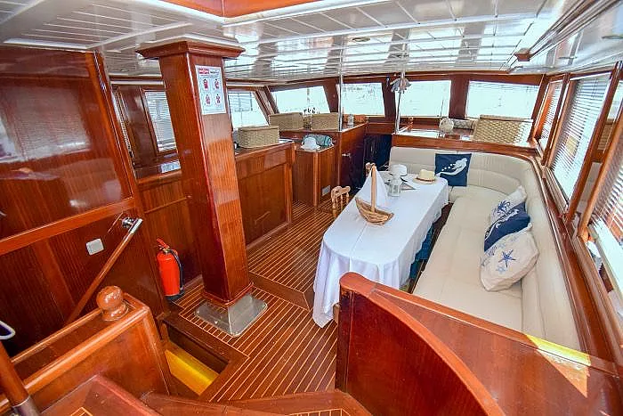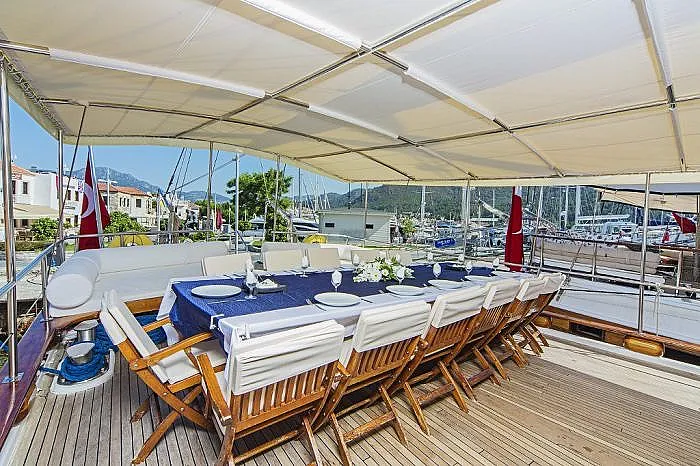 Charter rate includes, hire price of yacht; fuel ( max.4 hours a day );water,cooking gas,ship's laundry,harbour dues in Turkish waters, service of crew, equipment on board (fishing equipment, 2 canoe,1 paddle board, ringo, water ski, wake board and snorkeling)