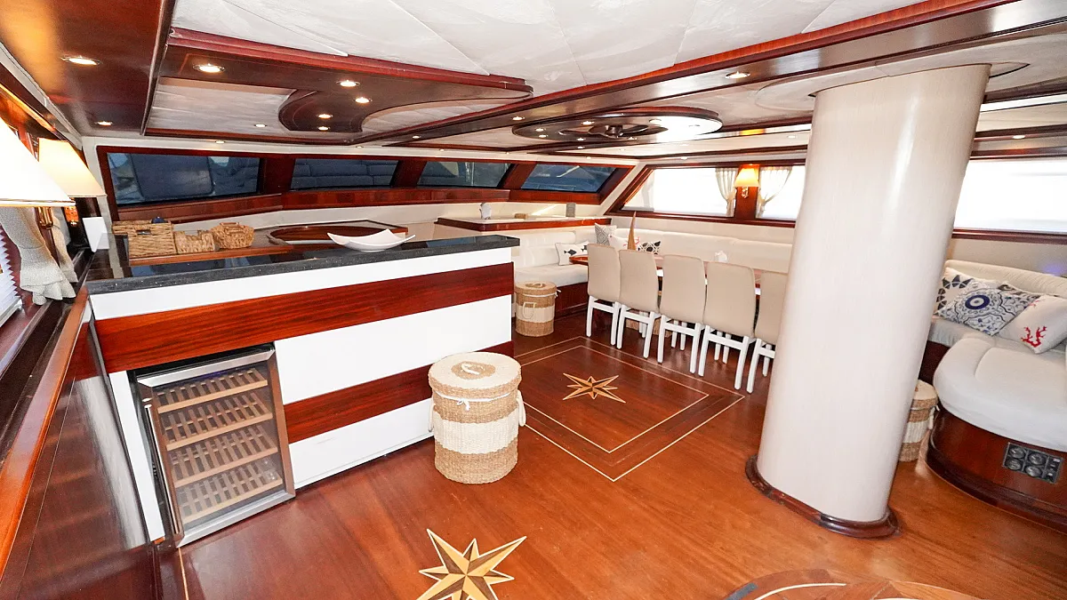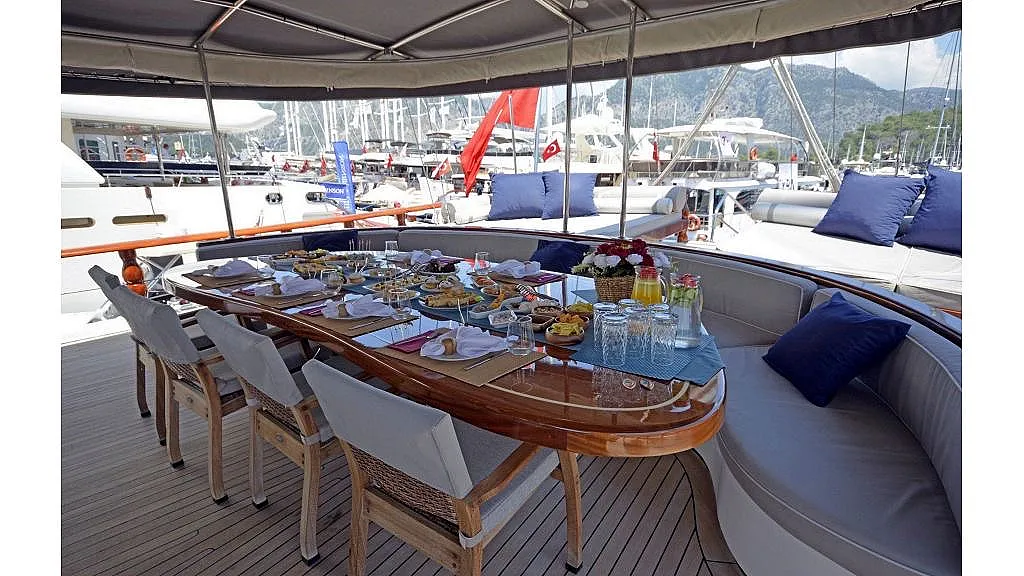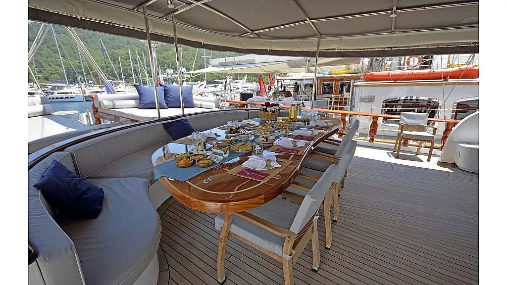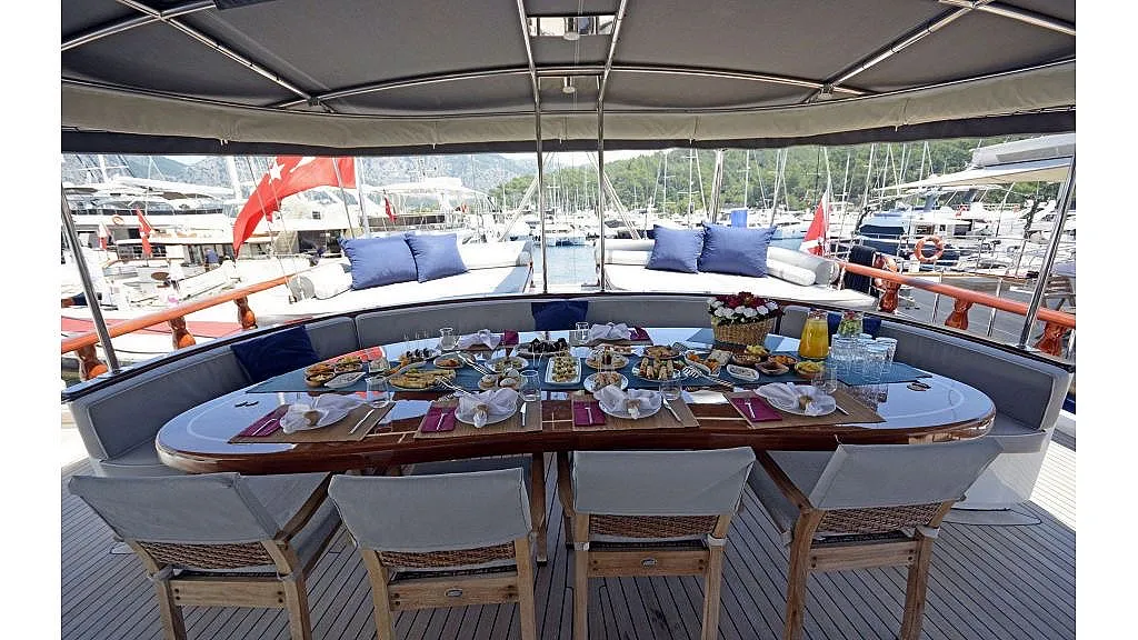 Charter rate includes, hire price of yacht; fuel ( max.4 hours a day );water,cooking gas,ship's laundry,harbour dues in Turkish waters, service of crew, equipment on board (fishing equipment, 2 canoe,1 paddle board, ringo, water ski, wake board and snorkeling)