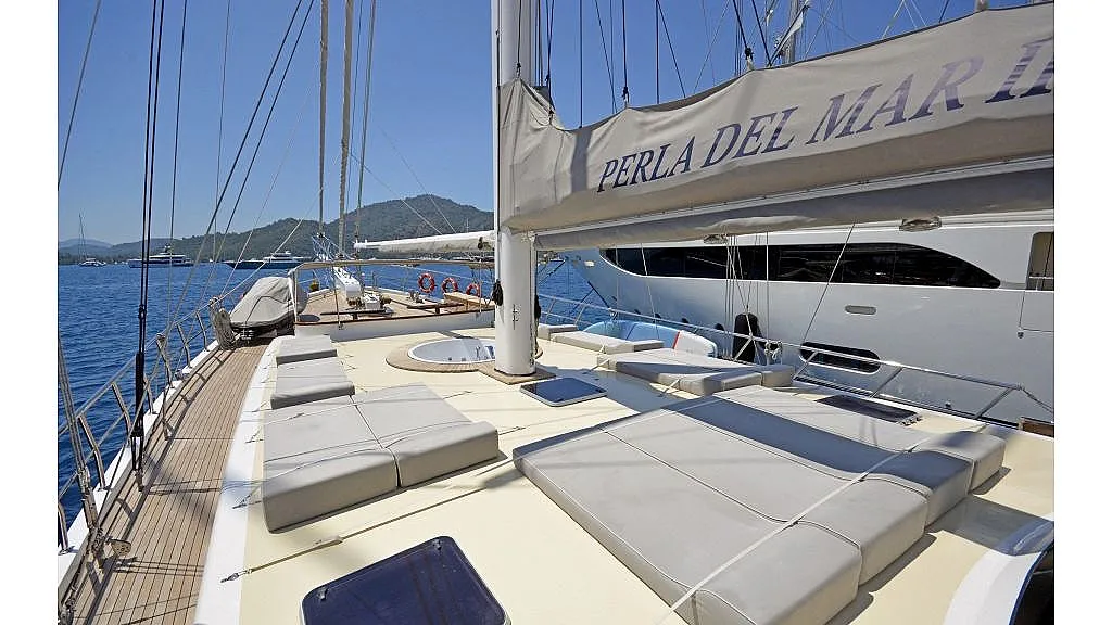 Meals on Board ; Perla del mar 2 yacht Full board meal supplement on boards per day per person 70.-Euro, harbor fees, diesel during in greek waters, formalities and fuel supplement for Greek waters charter, fuel of water sports on board. Jet ski on Perla Del Mar 2 ( hire price is per day 450.-Euro plus fuel )