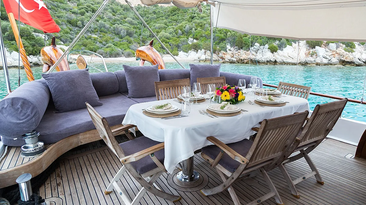 VAT, food and beverages, fuel for dinghy operated water sports, private marinas and Göcek harbour fees ( if requested by the client ), Greek island harbour and custom fees, taxes and port and agency taxes in non-Turkish waters ( if requested by the client), Wi-F i in Greece ( if requested by the client ), crew tips ( the industry’s standard is 5% to %15% of base charter rate ), transfers to and from the yacht/hotel/airport