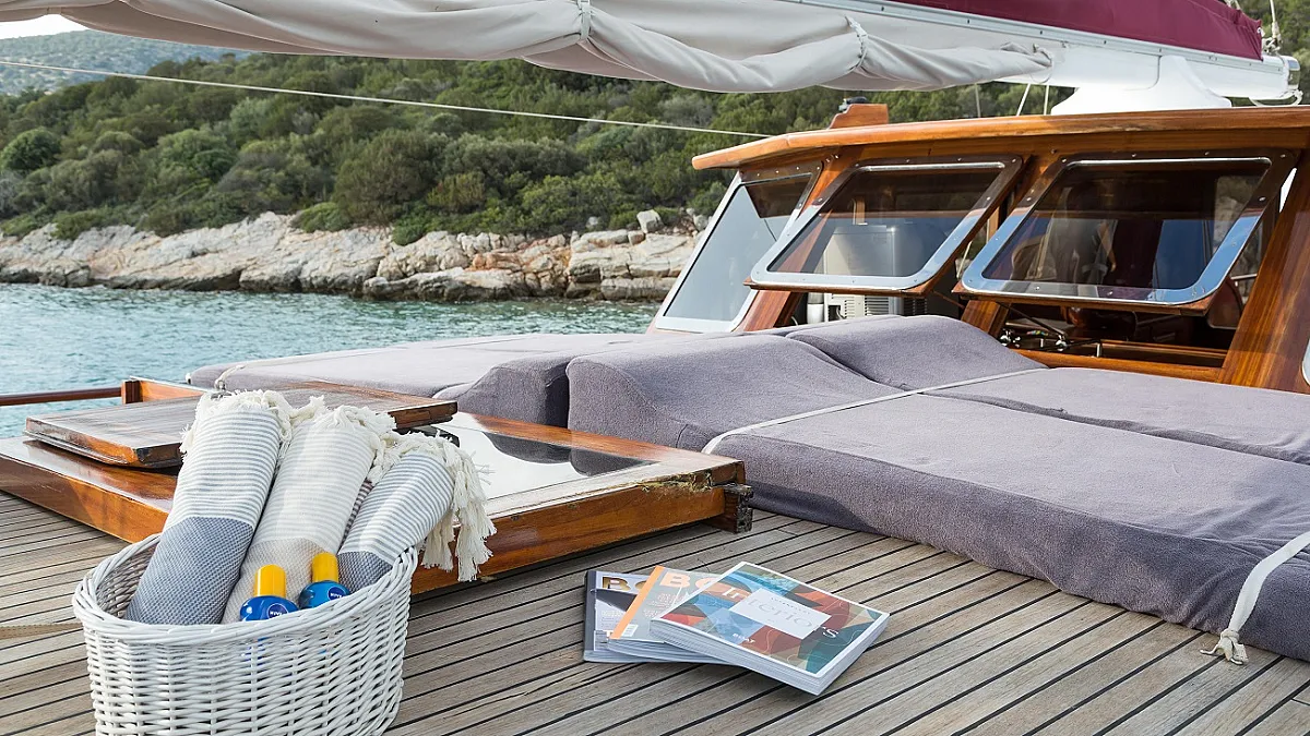 Charter rate includes, fuel for main engines on the advised itinerary around 4 hours daily in Turkish waters, crew, insurance of the yacht, generators fuel, A/C, linens, bathroom and beach towels, unlimited Wi-Fi in Turkish waters, embarkation and disembarkation harbour fees from/to Bodrum, use of water toys