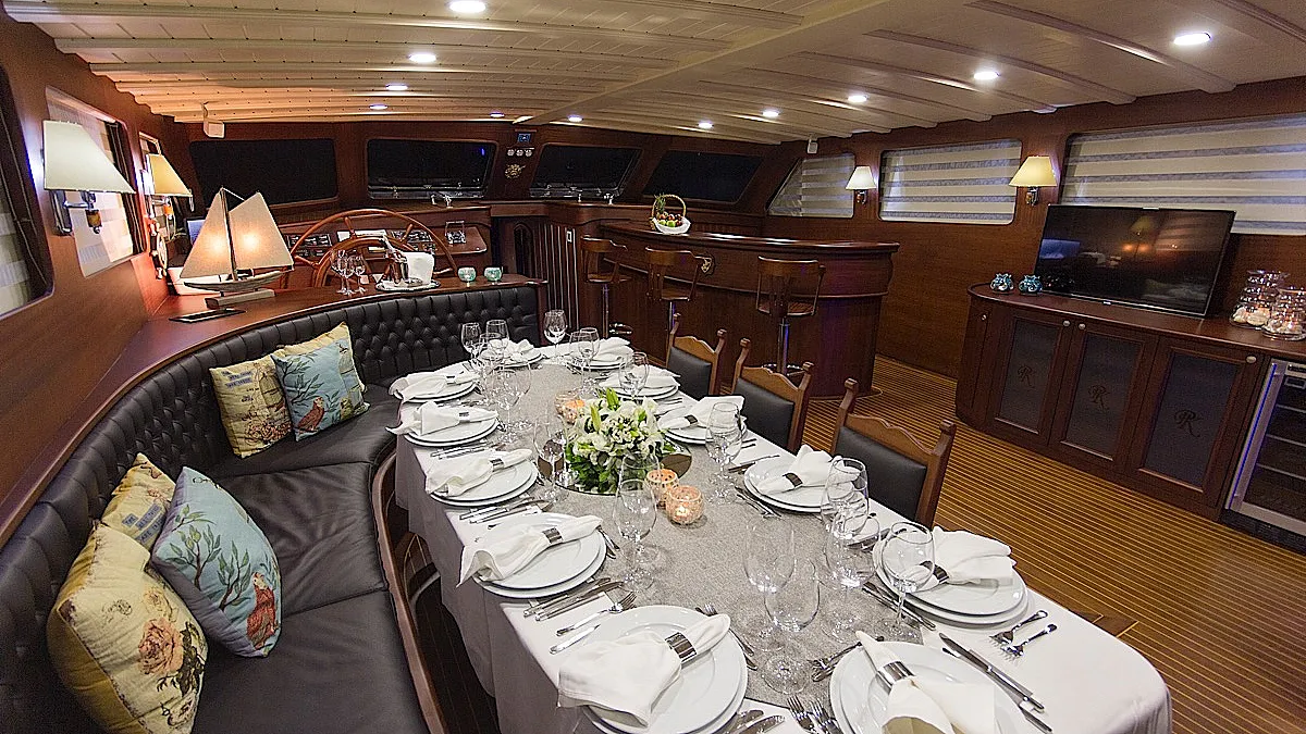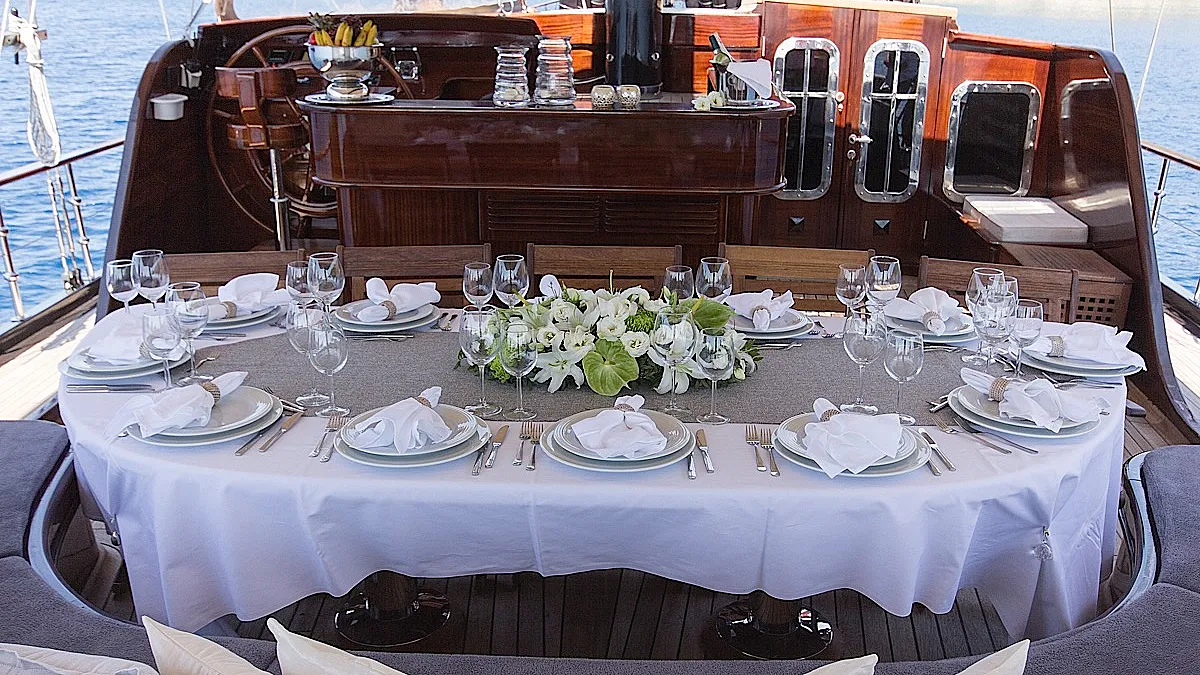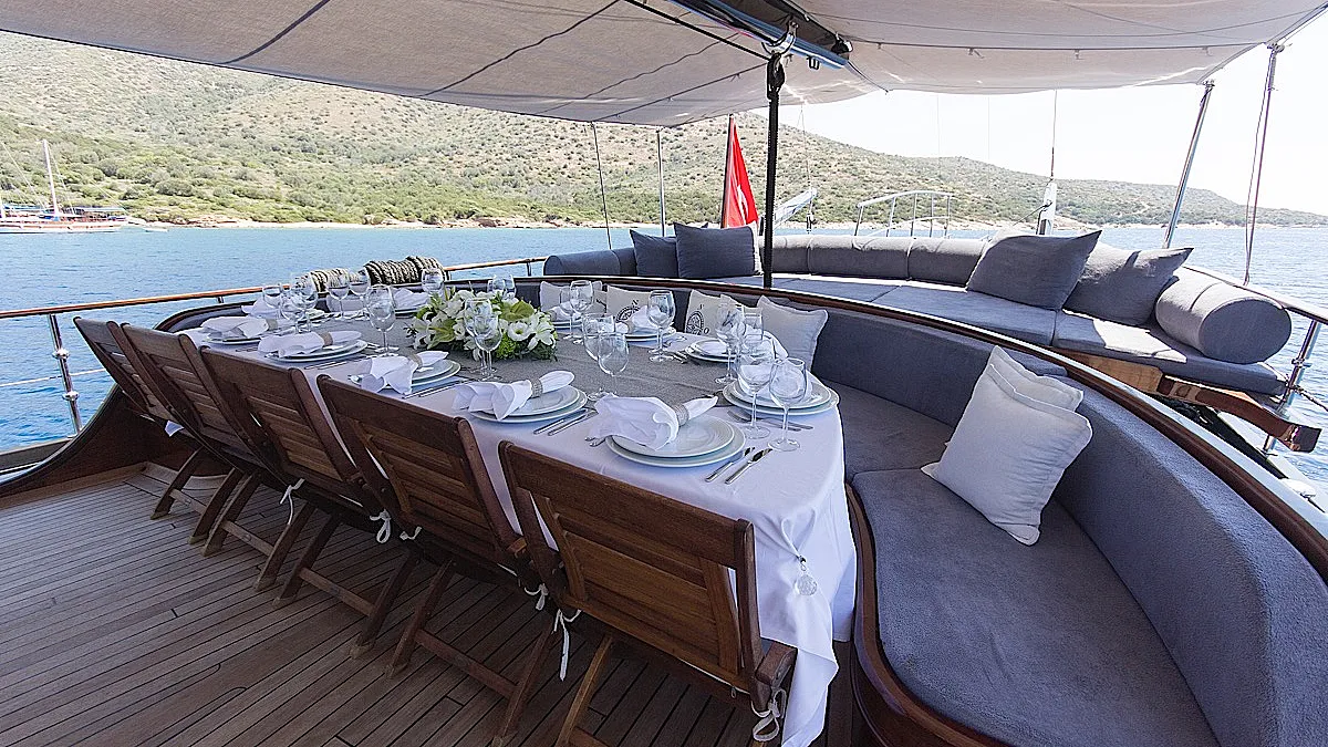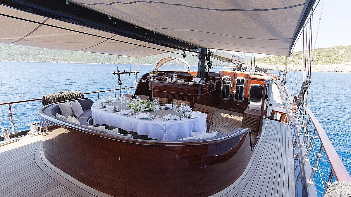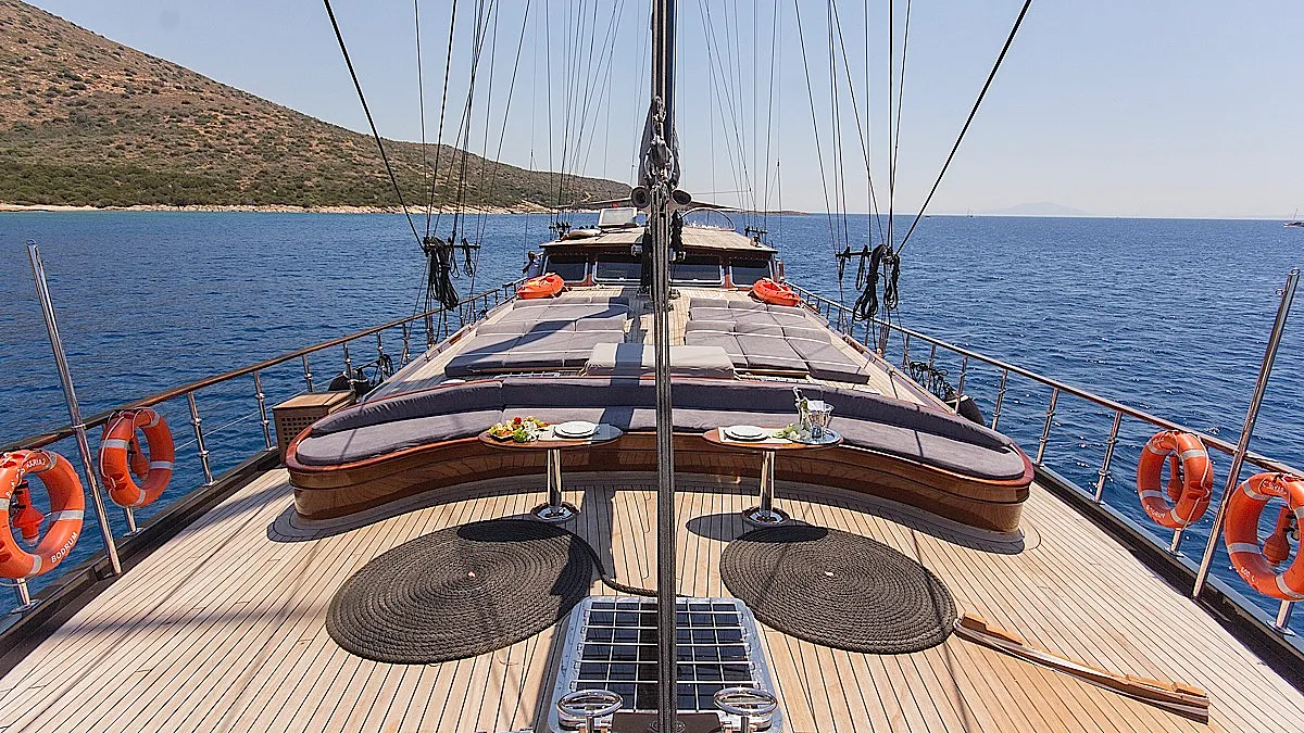 Built in Bodrum, this handcrafted beauty and has all the features of a traditionally-styled vessel. Her carefully designed exterior and interior distinguish her as one of the most luxurious wooden gulets ever built and she is easily one of the most sought after charter yachts in the area. From her expansive teak decks to her tastefully decorated interior, every aspect of this yacht promotes harmony.