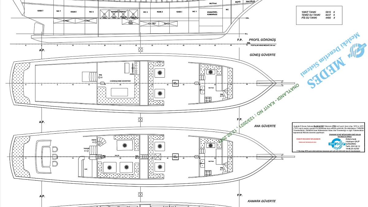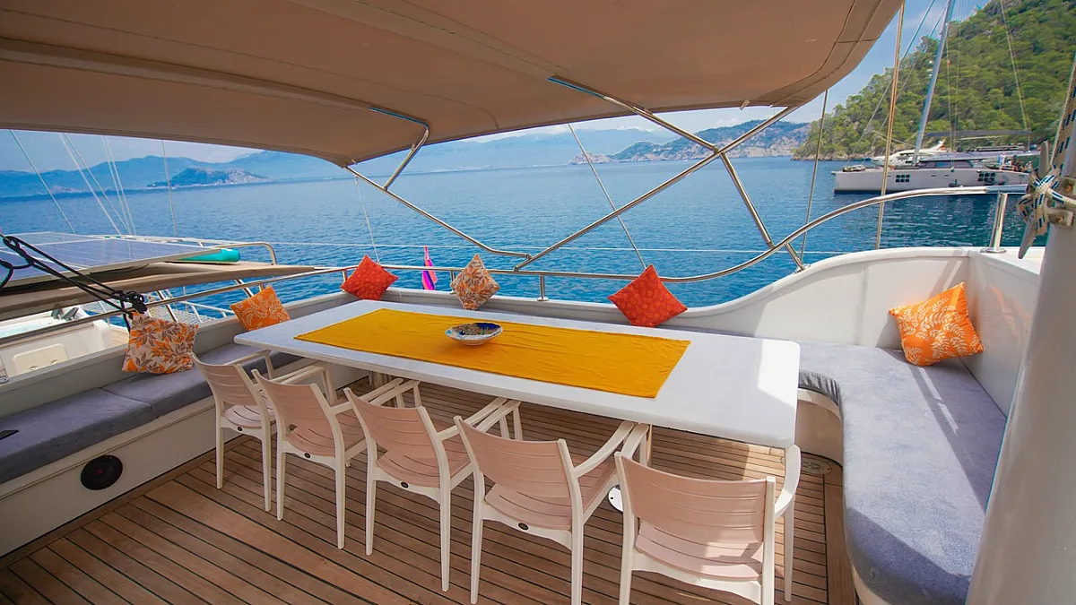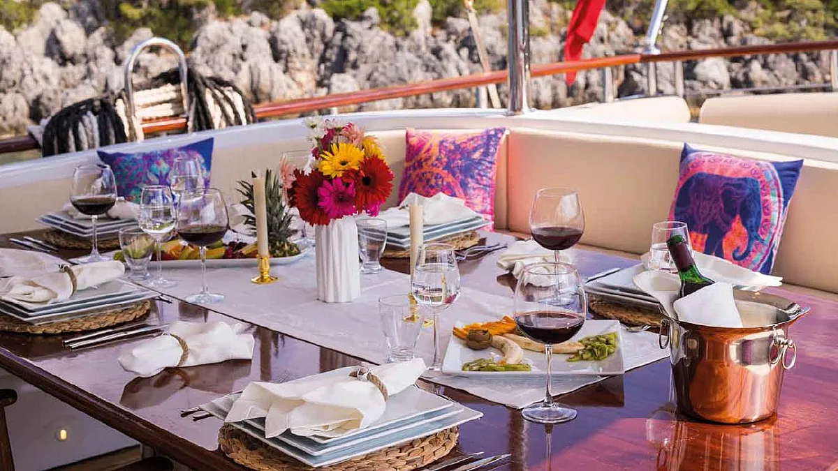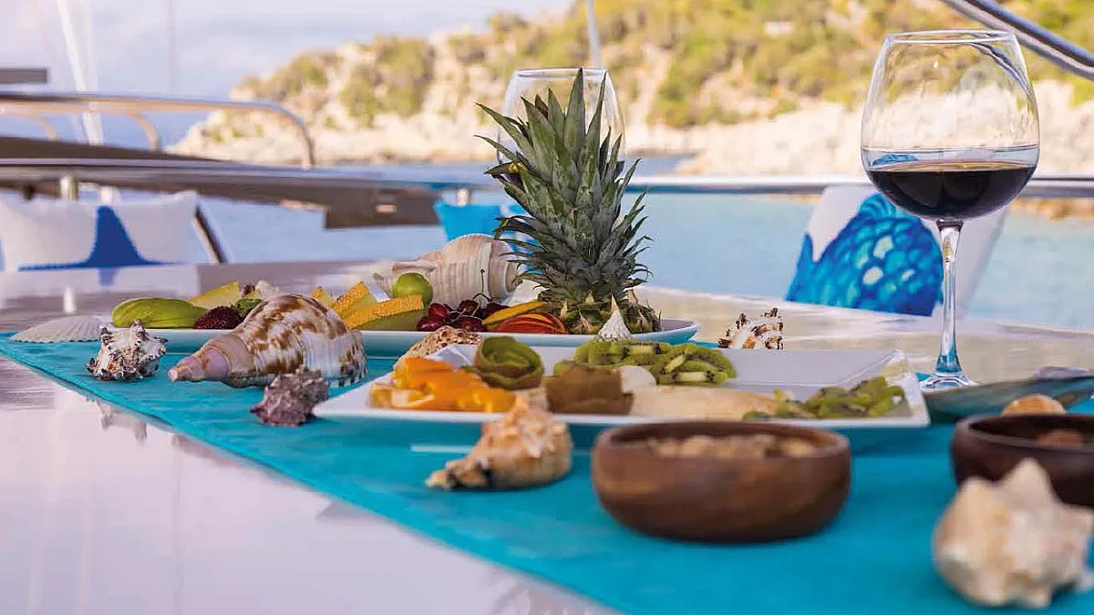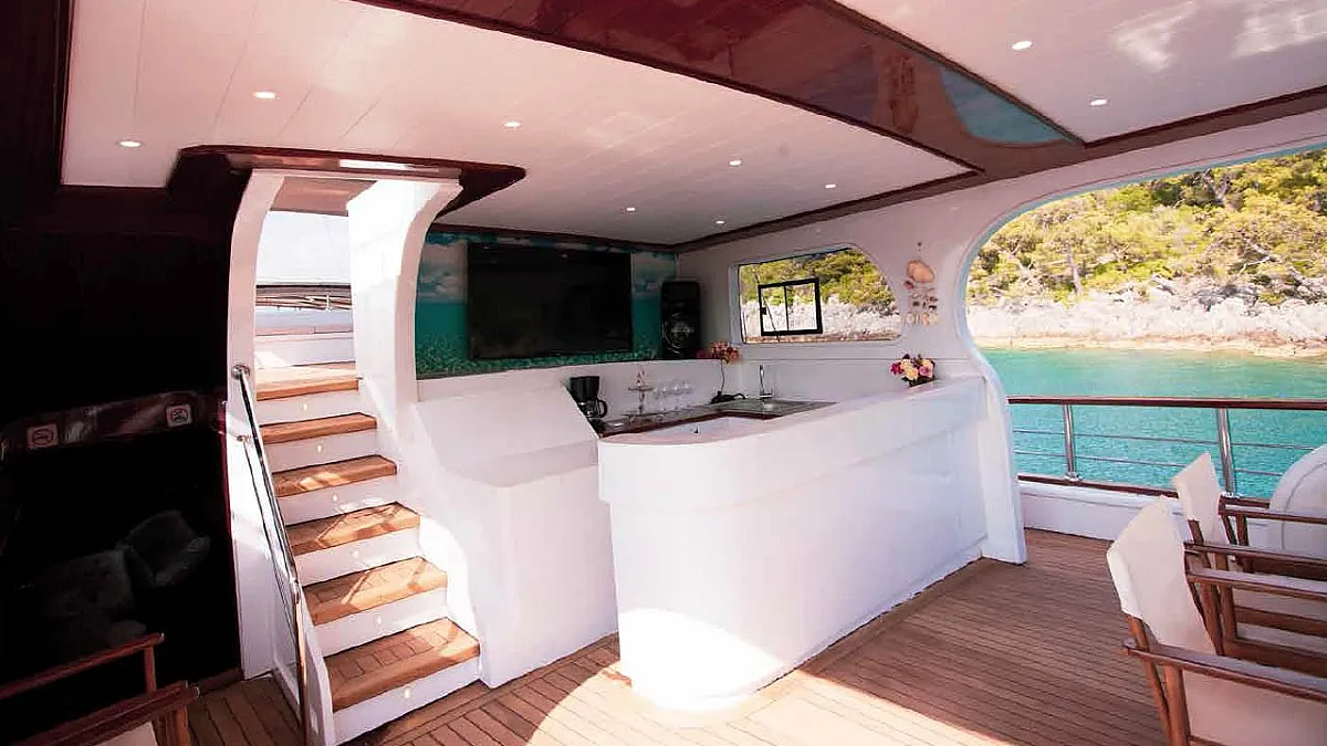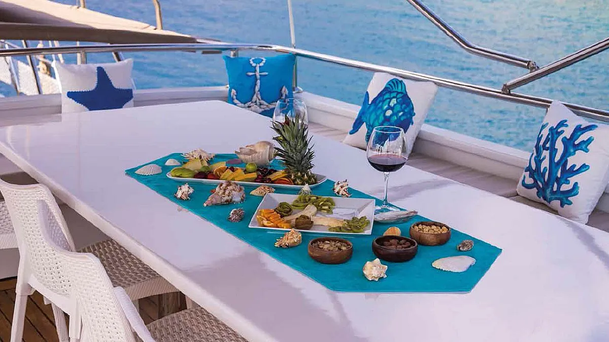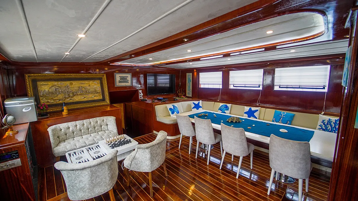 Charter rate includes, yacht insurance, fuel for average cruising time a day, daily cabin and bathroom cleaning, crew services, mooring fees in Türkiye, rent of the yacht, service boat, canoes, paddle boards, etc., ship's laundry (if available)