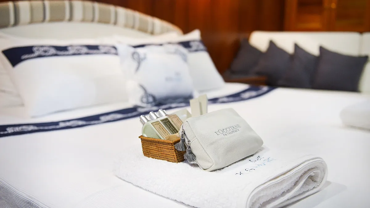 Charter rate includes, fuel for main engines on the advised itinerary around 4 hours daily in Turkish waters, crew, insurance of the yacht, generators fuel, A/C, linens, bathroom and beach towels, unlimited Wi-Fi in Turkish waters, embarkation and disembarkation harbour fees from/to Bodrum, use of water toys