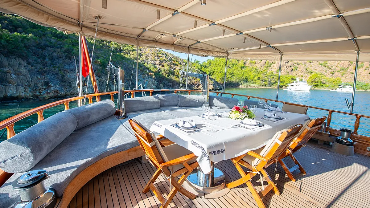 ROS MARE gulet is offered for yacht cruises in Turkey. She offers comfortable accommodation at a good price for 8 guests.