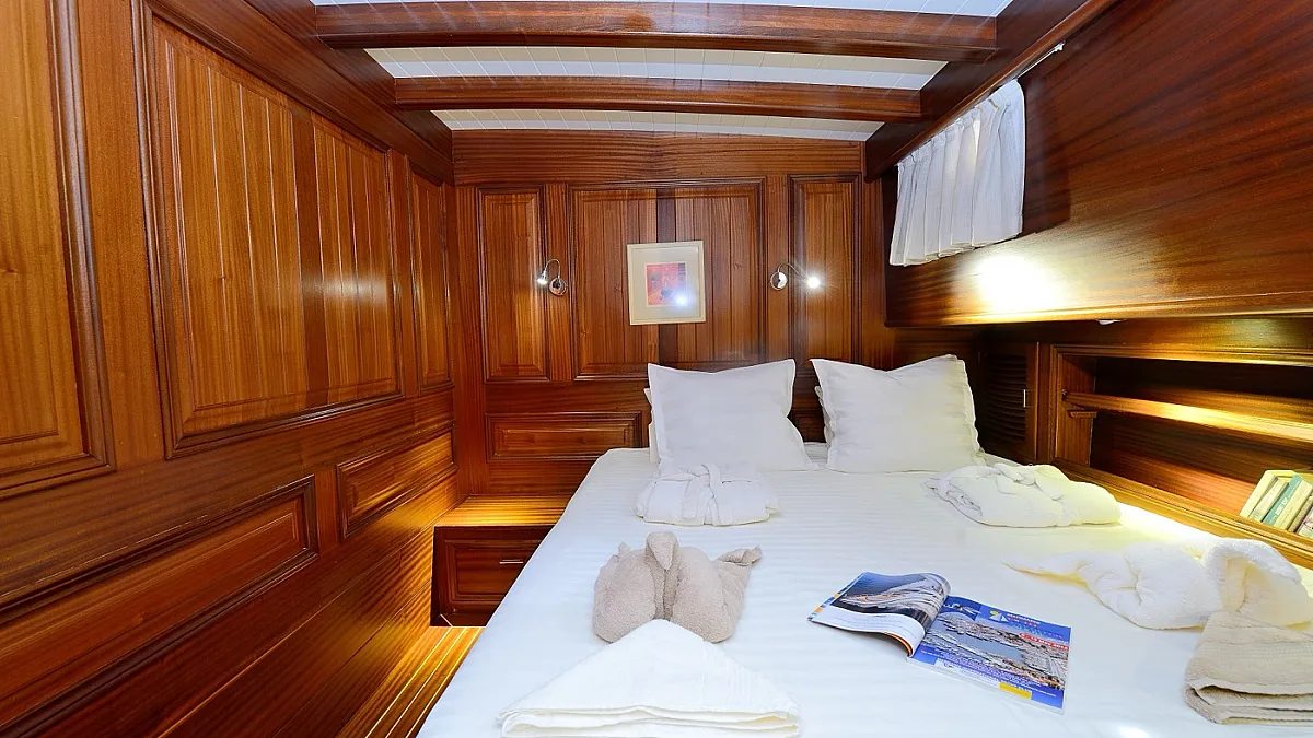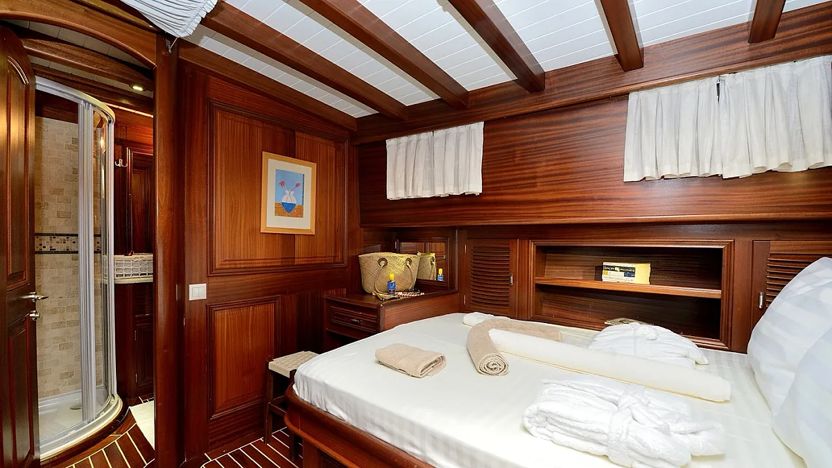 SAMARKAND gulet is available for charter in summer months from different Turkish ports. This gulet boat is one of the nicest in her price range. She offers a comfortable accommodation in 4 cabins (2 with Double bed and 2 with Twin bed). Each stateroom is ensuite.