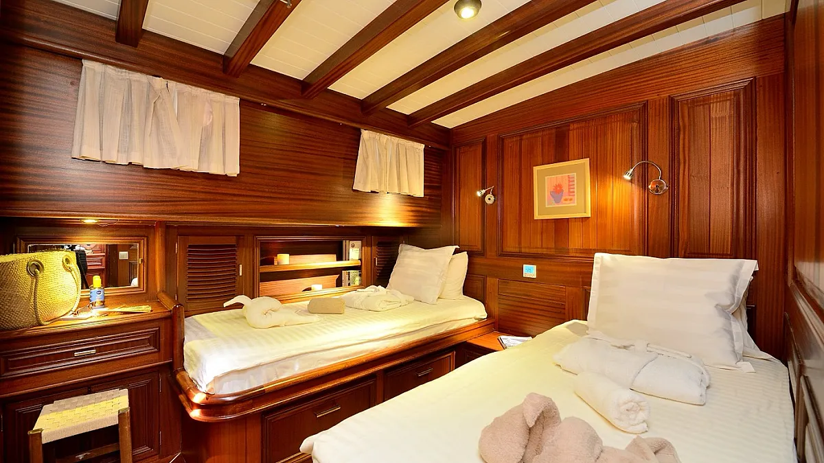 2 Double, 2 Twin staterooms. Twin cabins can be converted to double beds. All staterooms are with vanity table sets.