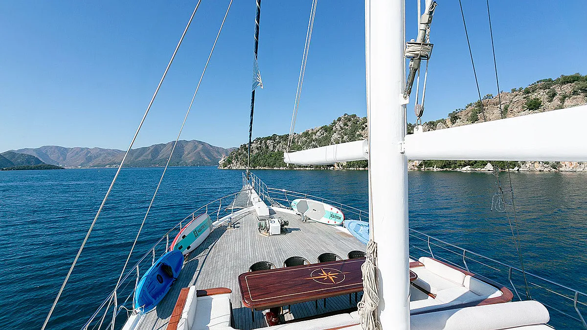 VAT, all meals and drinks for the charter, fuel for motor-operated equipment (tender, water sports), all marinas, all land tours, transfers, any personal expenses of the guests, crew gratuity (10-15% from the charter fee). Fuel surcharge for portion of charter outside of Turkish waters, any customs expenses if applicable.