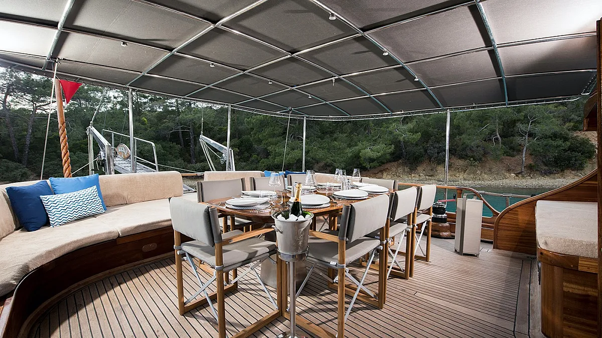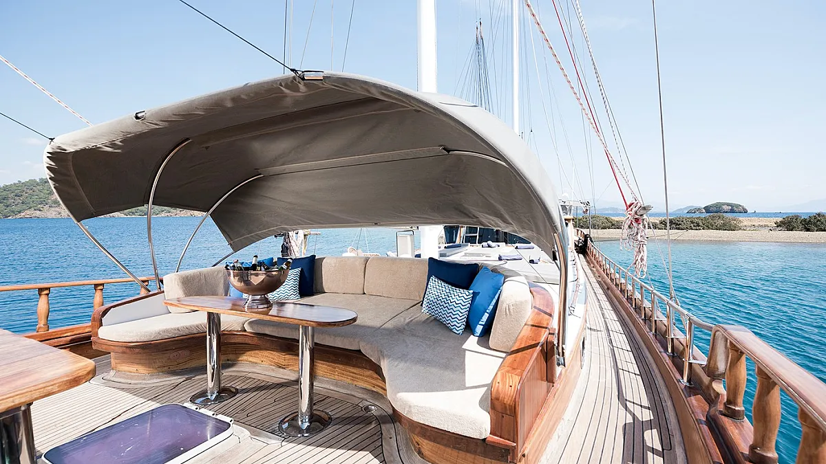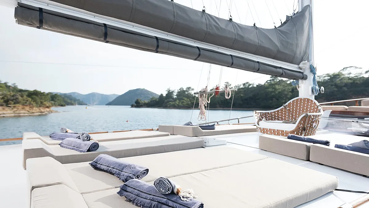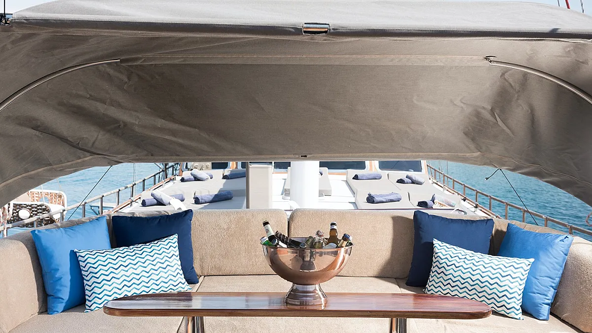 And last, but definitely not least, SERENAD A gulet has operation sails. She offers a fantastic sailing experience and it’s an absolute must to feel when you charter her.