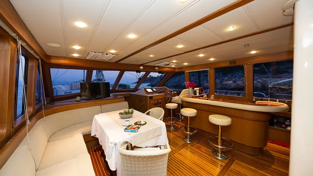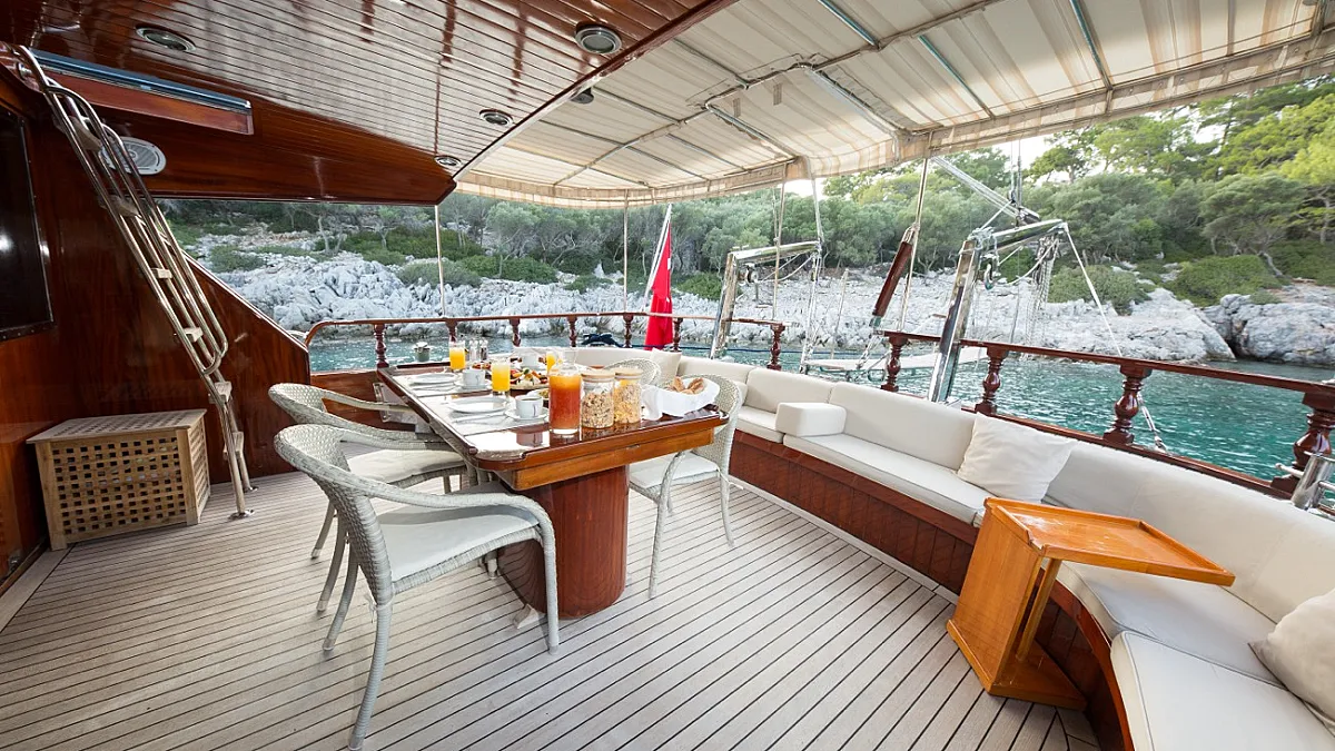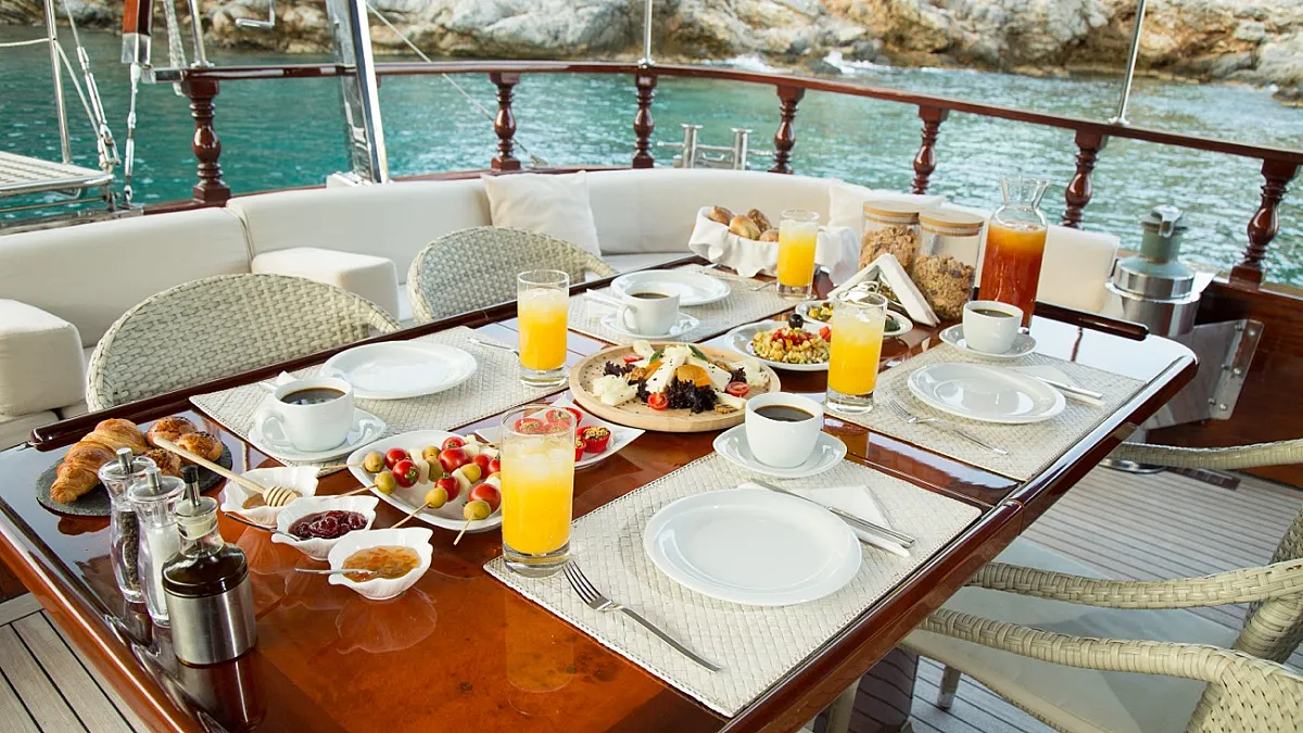 All meals and drinks for the charter, fuel for motor-operated equipment (tender, water sports), all marinas, all land tours, transfers, any personal expenses of the guests, crew gratuity (10-15% from the charter fee). Fuel surcharge for portion of charter outside of Turkish waters, any customs expenses if applicable.
