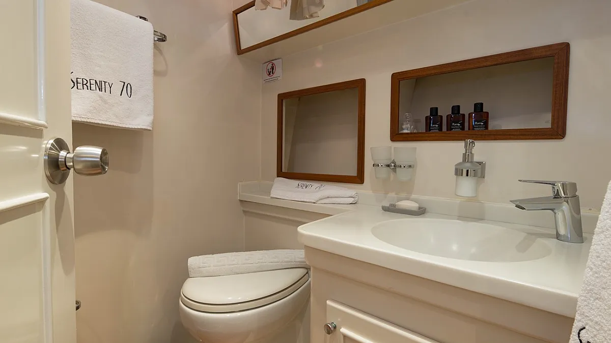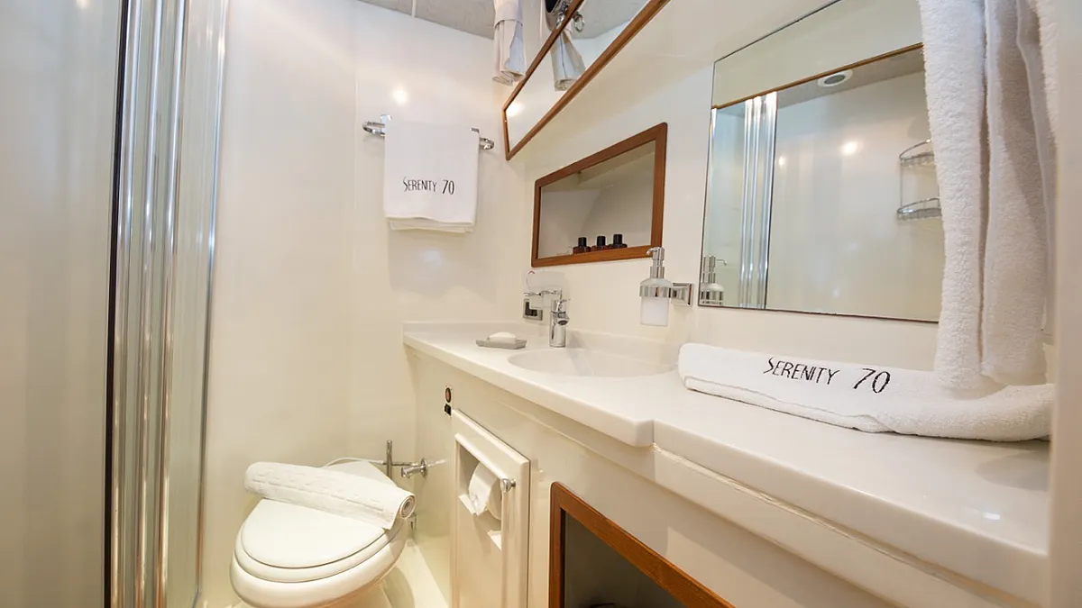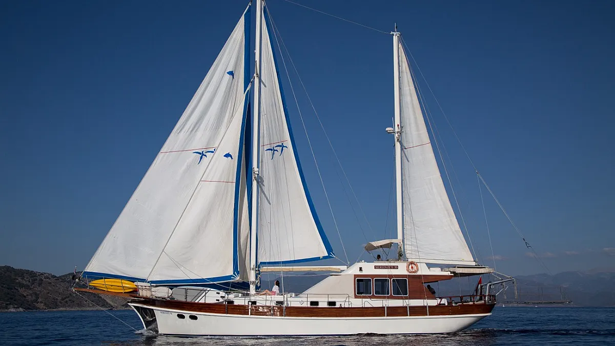Built in 1997 and refitted in 2019, this handcrafted yacht has a traditional gulet hull and a generous layout to ensure an abundance of space both above and below decks. At 21 metres, SERENITY 70 accommodates a smaller party of 6 guests in one master cabin, one VIP cabin and one double cabin. She is meticulously well maintained and has a professional crew of two.